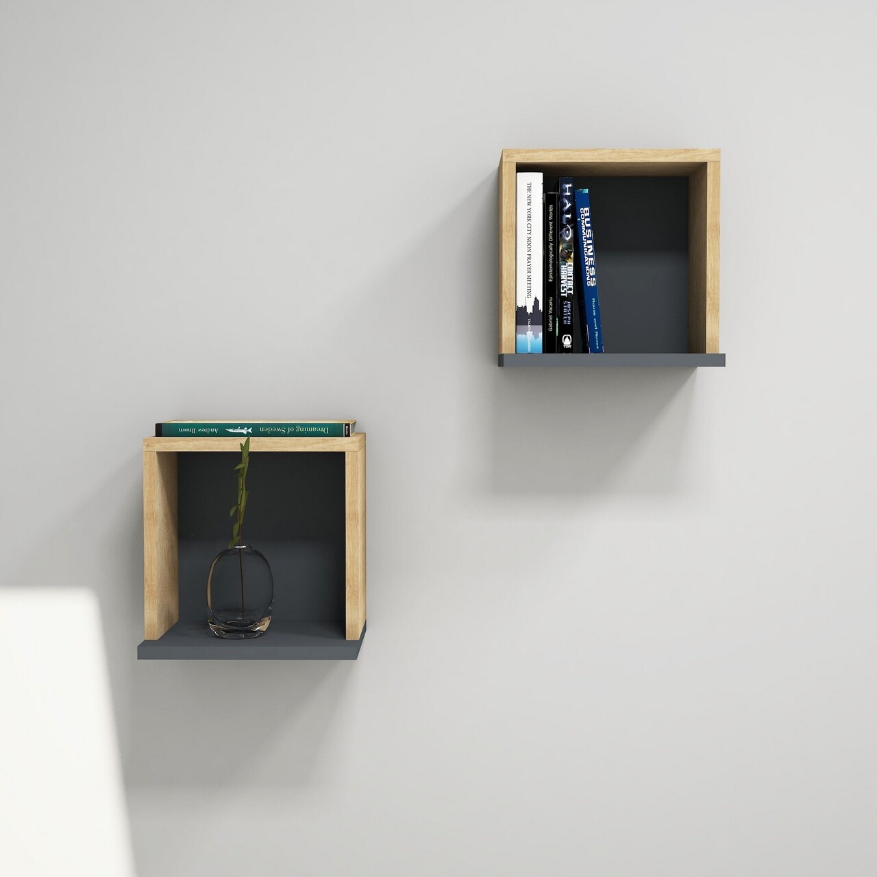 Set 2 rafturi pentru perete Sevima, Puqa Design, safir/antracit