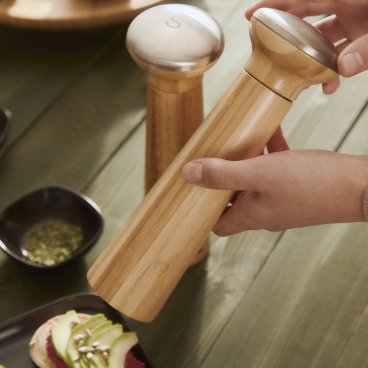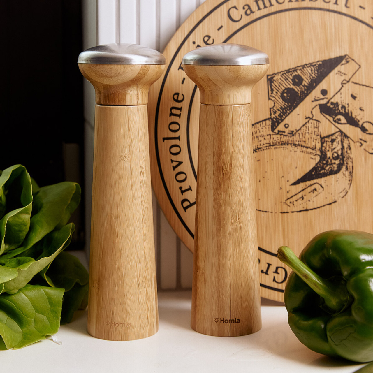 Set 2 rasnite Anthe, Homla, 7x23 cm, bambus/inox, natur