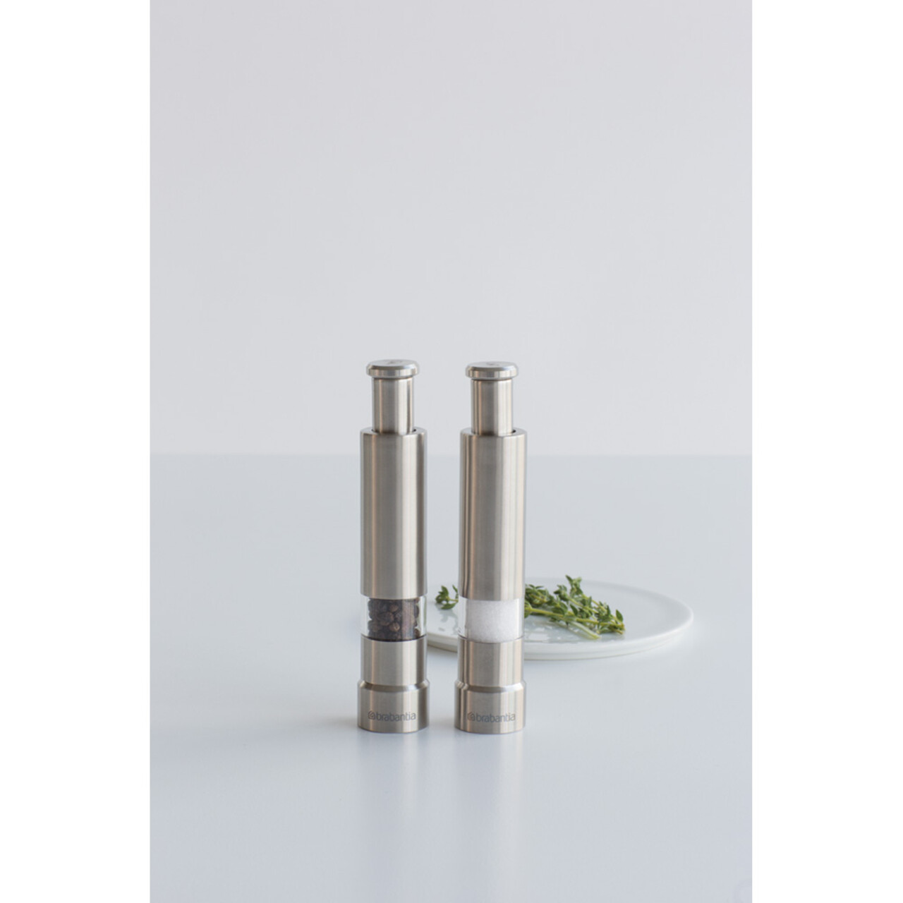 Set 2 rasnite sare si piper, Brabantia, Matt, 5.5x2.8x14 cm, inox, argintiu mat