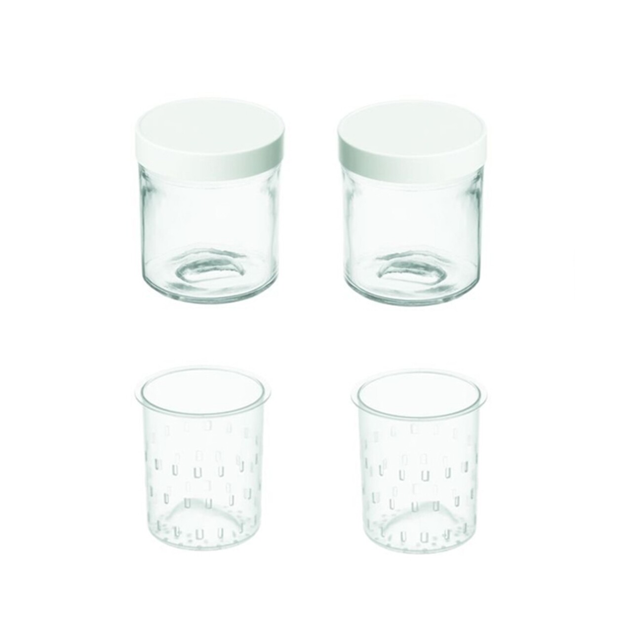 Set 2 recipiente, marca Cuisinart, cu capacitatea de 230 ml, pentru aparatul de preparat banza si iaurt cu codul YM400E.