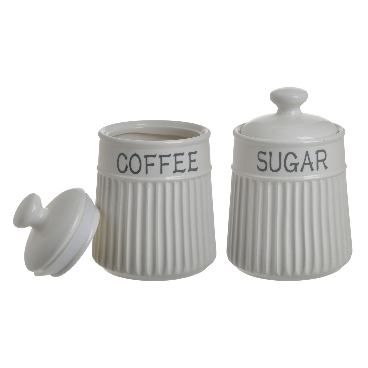 Set 2 recipiente cu capac Coffee Sugar, Inart, 11x16 cm, portelan