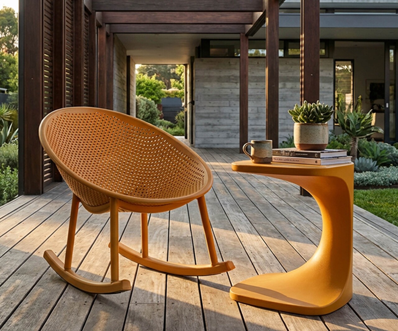 Set 2 scaune balansoar, Mauro Ferretti, Ibiza, 66x88x80 cm, utilizare interior / exterior, plastic, mustar