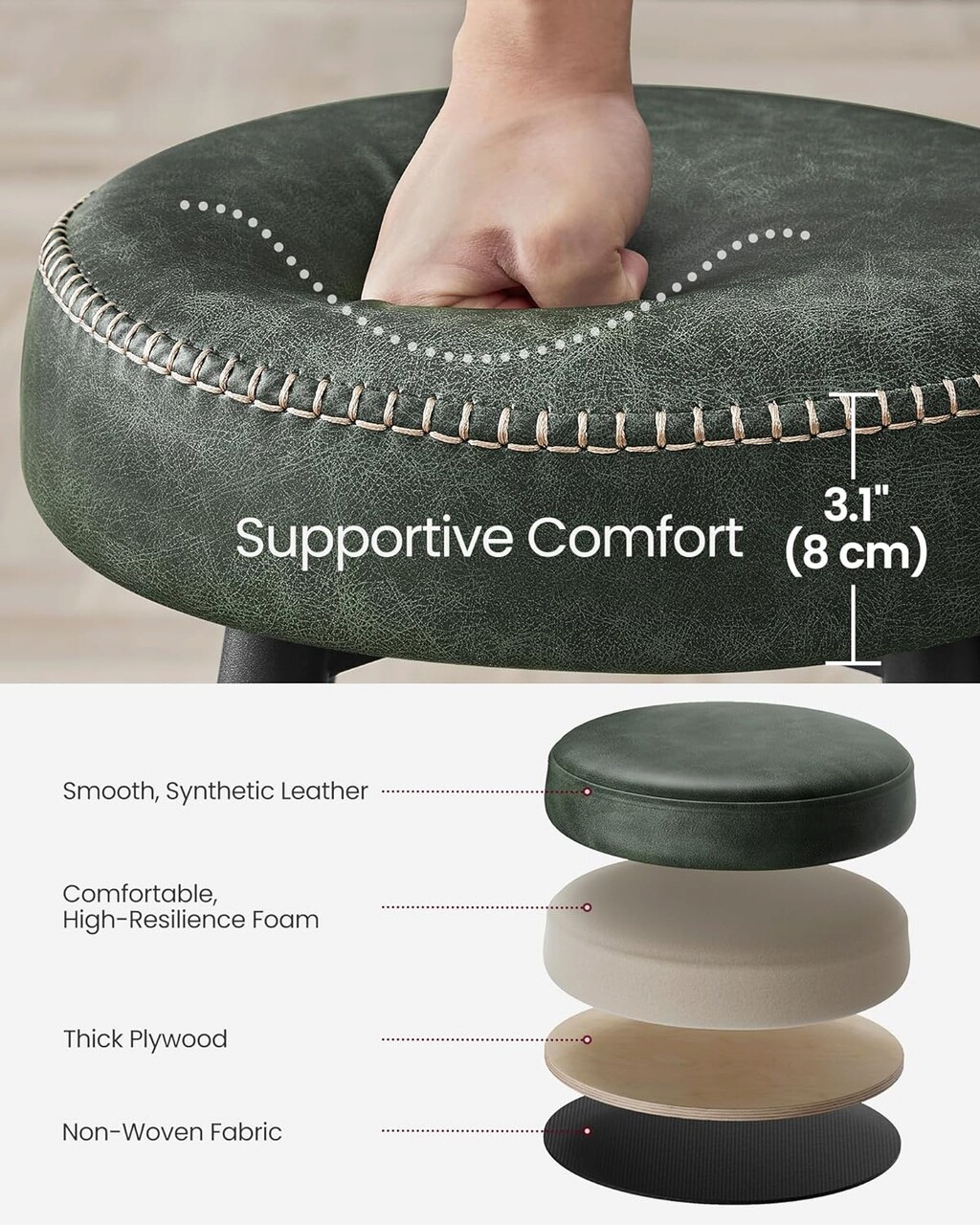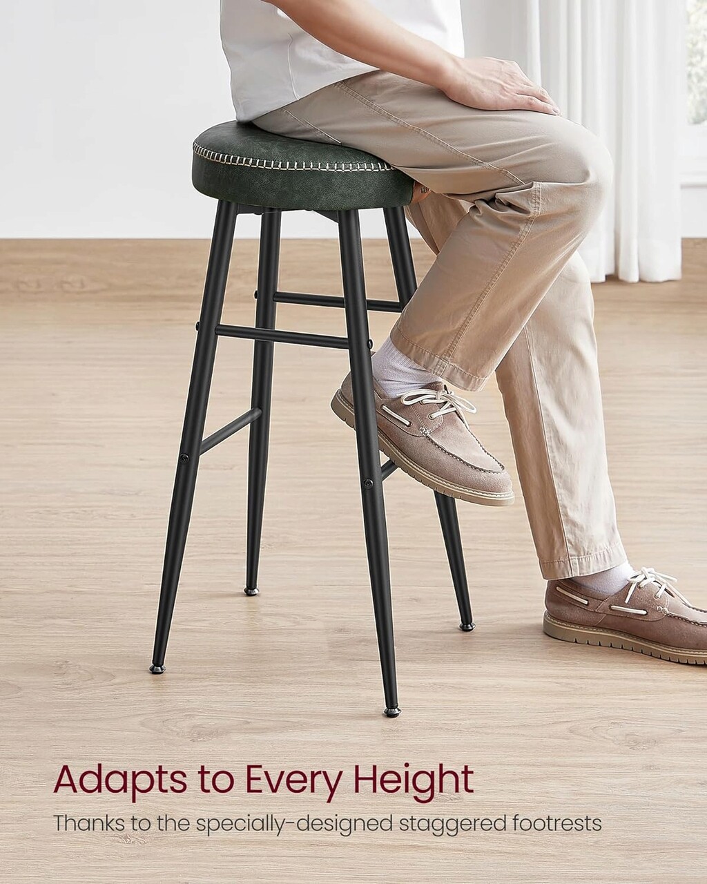 Set 2 scaune de bar Ekho, Vasagle, 51.6 x 51.6 x 75 cm, otel/piele ecologica, verde