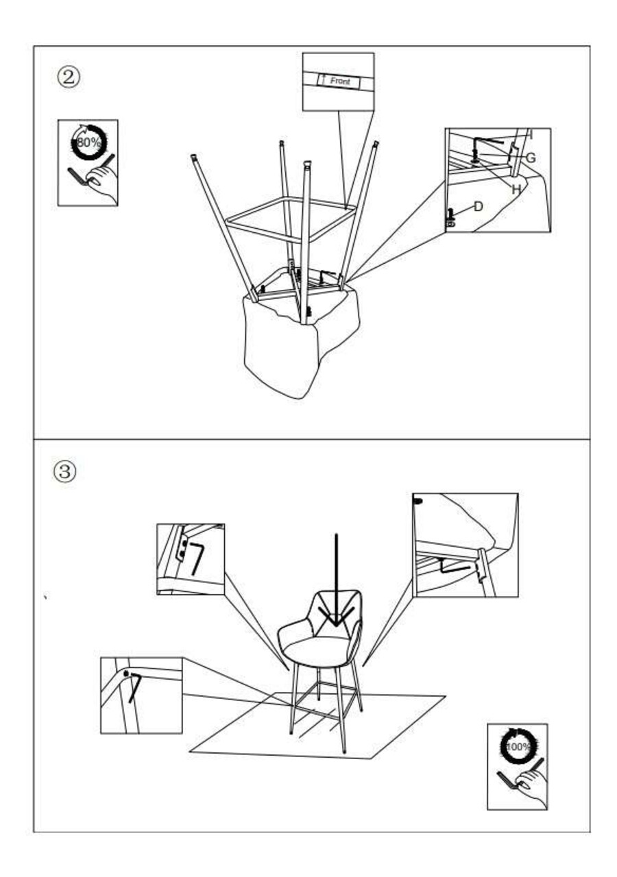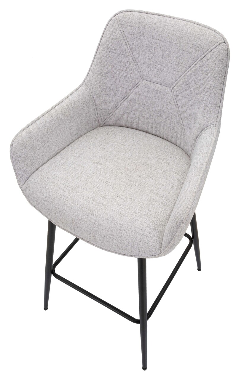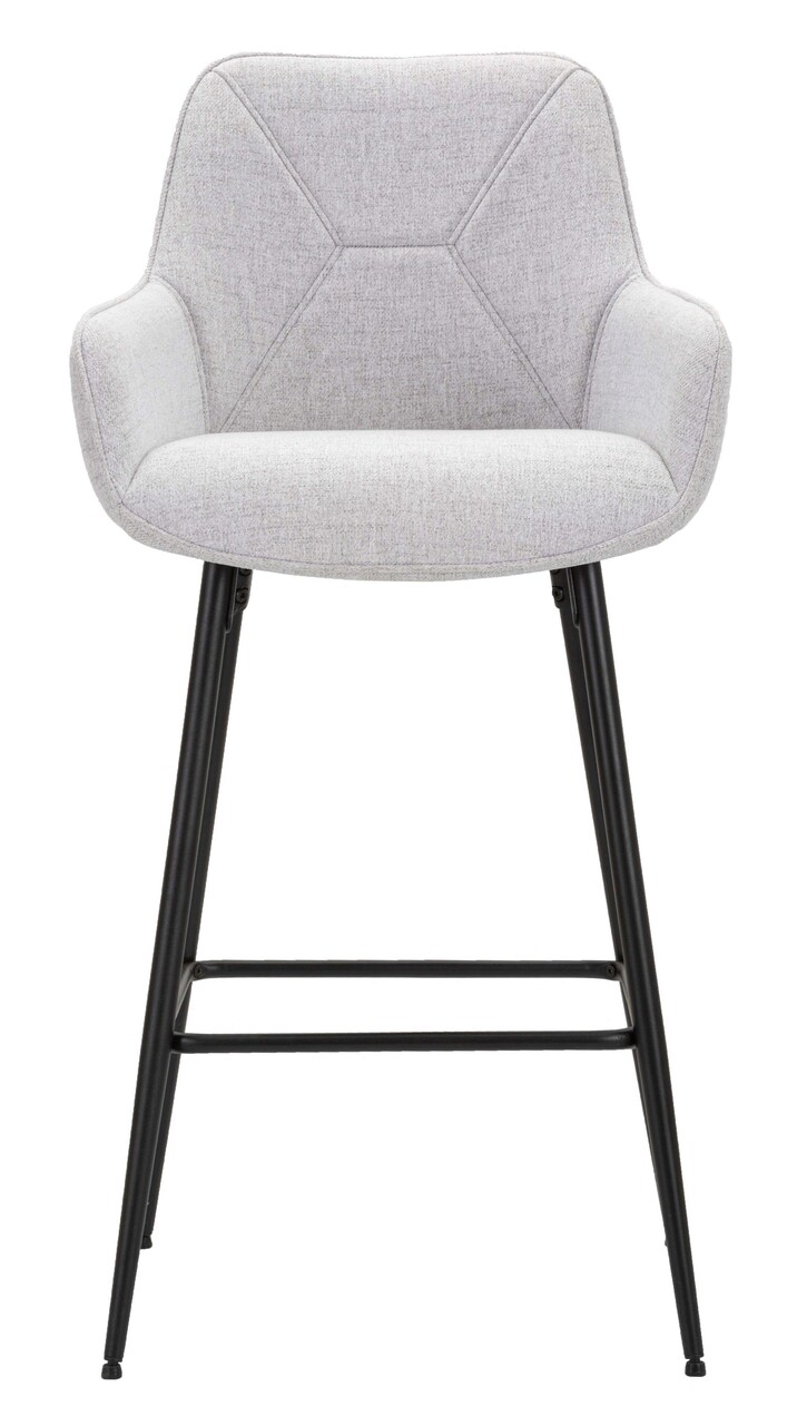 Set de 2 scaune de bar din tesatura captusita, cu cotiere practice. Tesatura impreuna cu picioarele si suportul pentru picioare din metal negru dau o nota de eleganta oricarei incaperi.