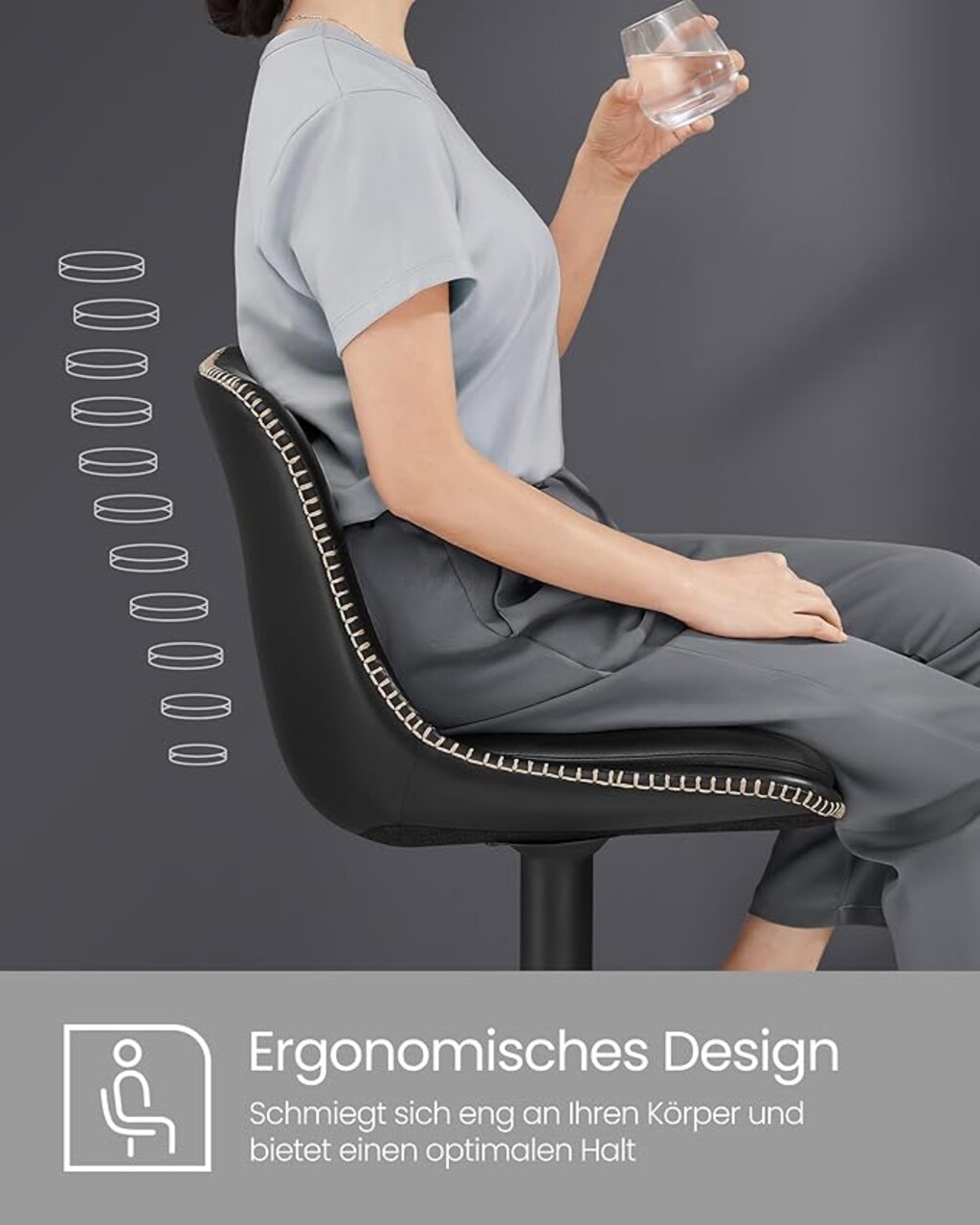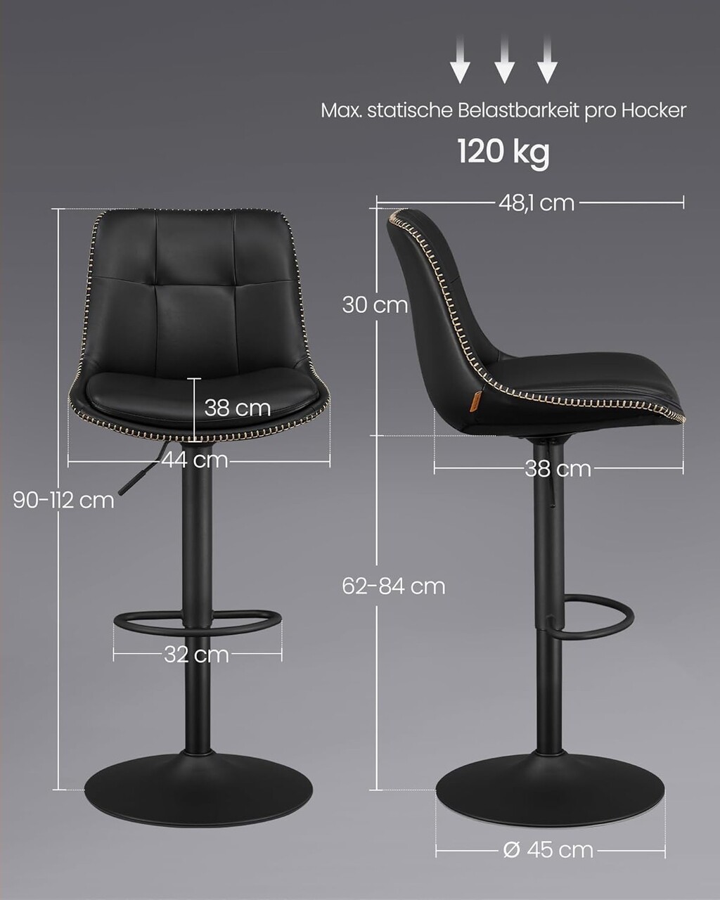 Set 2 scaune de bar rotative, Vasagle, 44x48x90-112 cm, otel cromat/piele ecologica, negru
