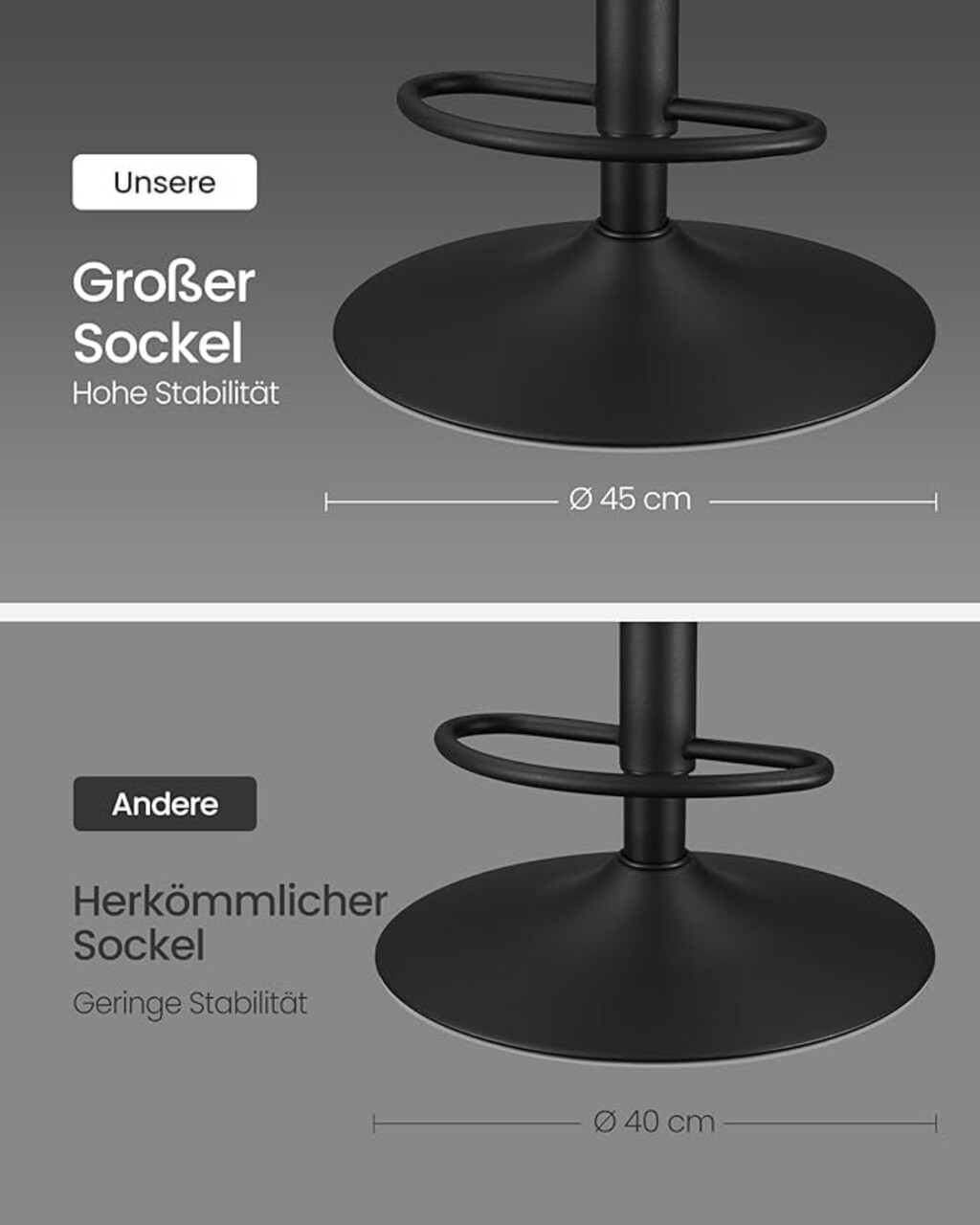 Stabil si sigur Cilindrul pe gaz de inalta calitate, cadrul din otel cromat si baza solida de 45 cm asigura stabilitate. Fie ca te rotesti 360° sau ajustezi inaltimea, scaunul ramane sigur.