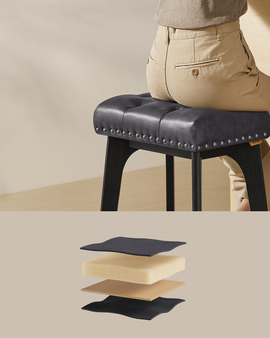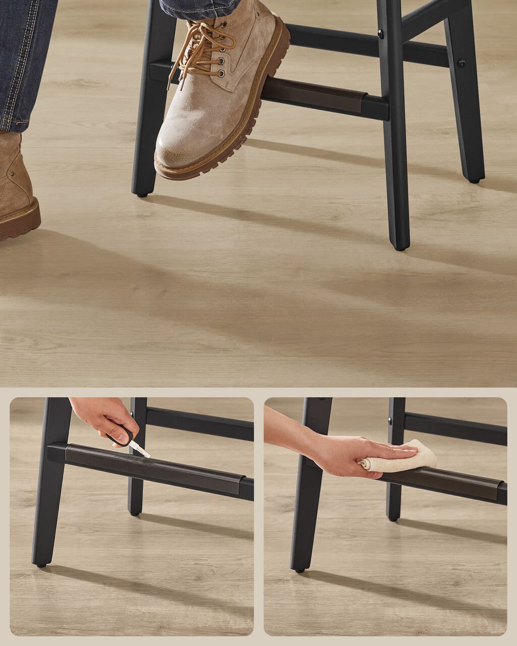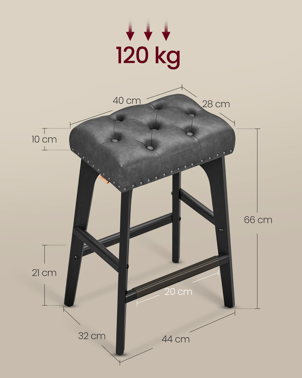 Set 2 scaune de bar, Vasagle, 44x32x66 cm, max 120 kg, lemn de cauciuc/piele ecologica, negru ink