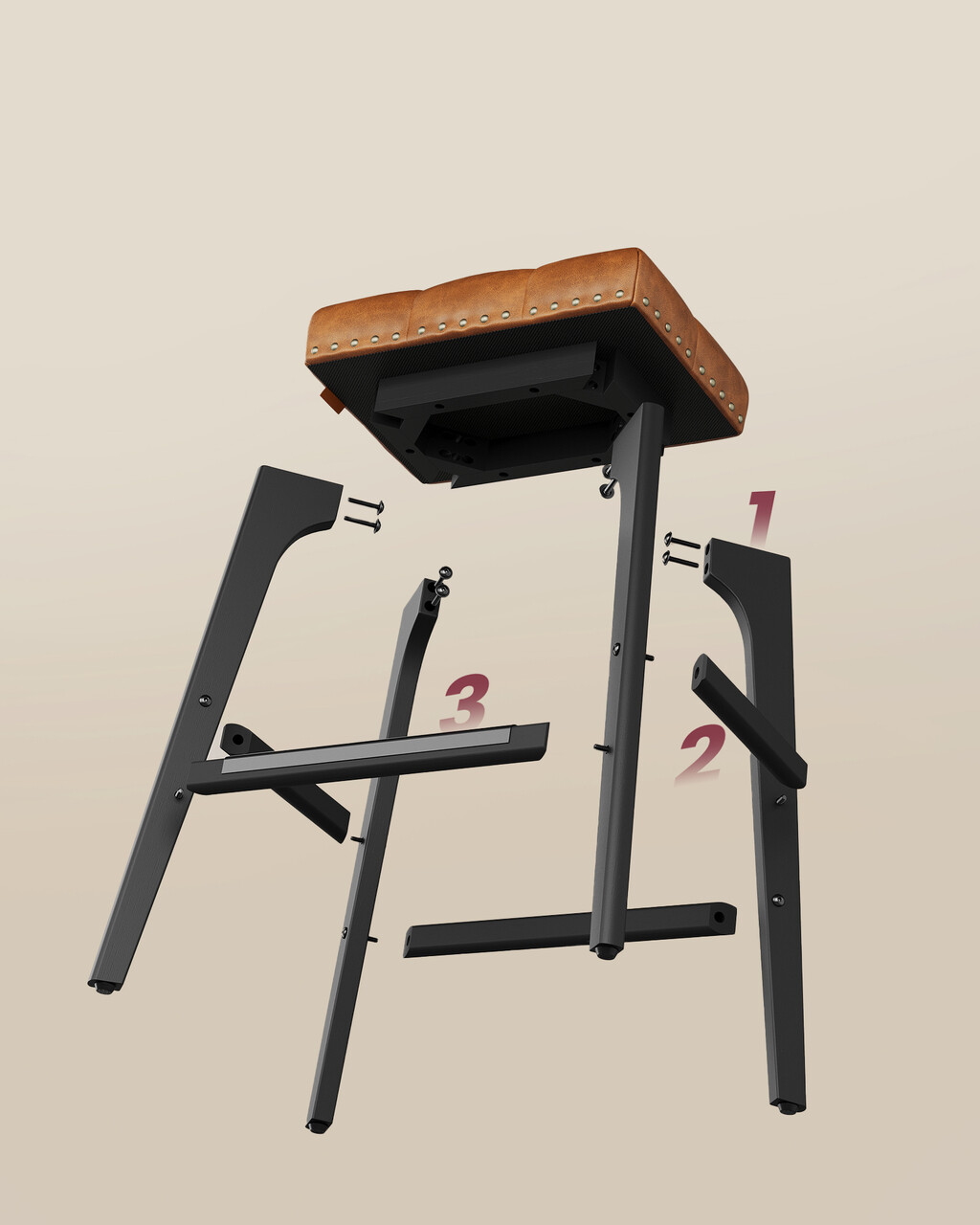 Compozitie material: lemn de arbore de cauciuc, otel, spuma, piele ecologica din poliuretan.