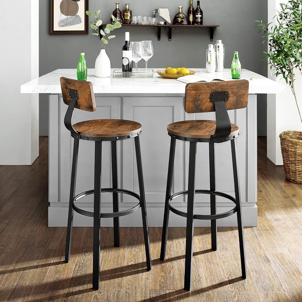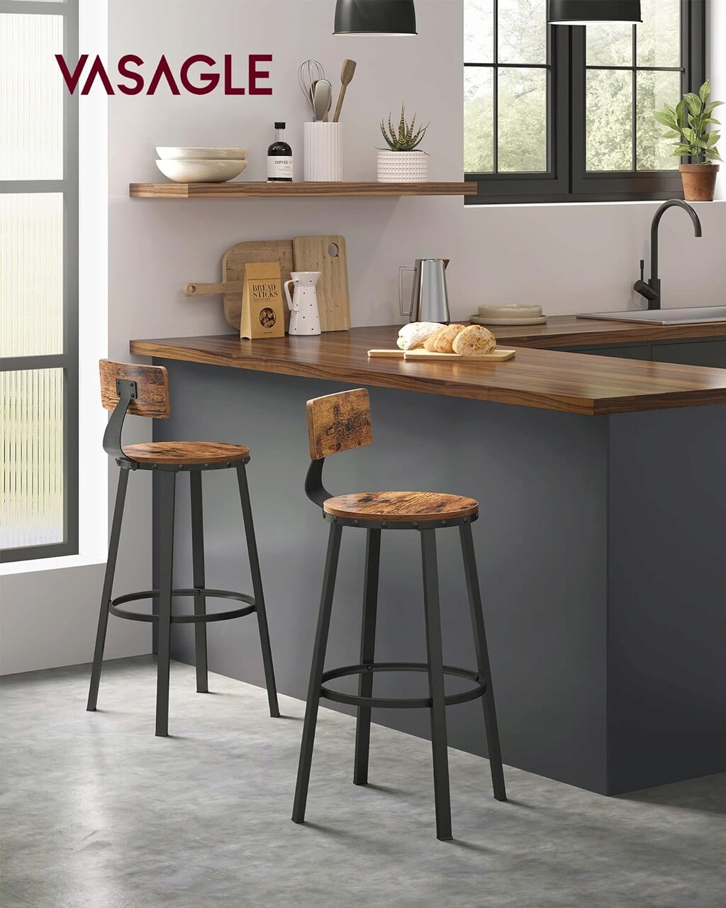 Set 2 scaune de bar, Vasagle, 54 x 54 x 99 cm, PAL/otel, maro rustic