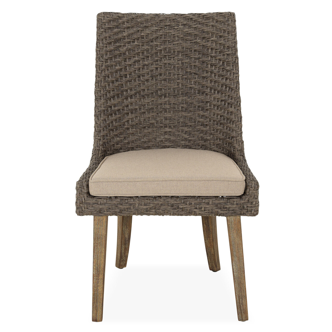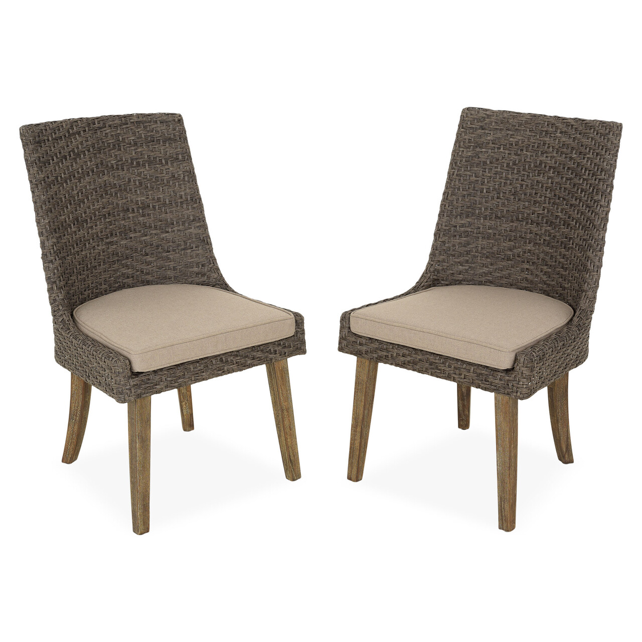 Set 2 scaune dining Yanet, aluminiu/lemn de teak, maro/bej