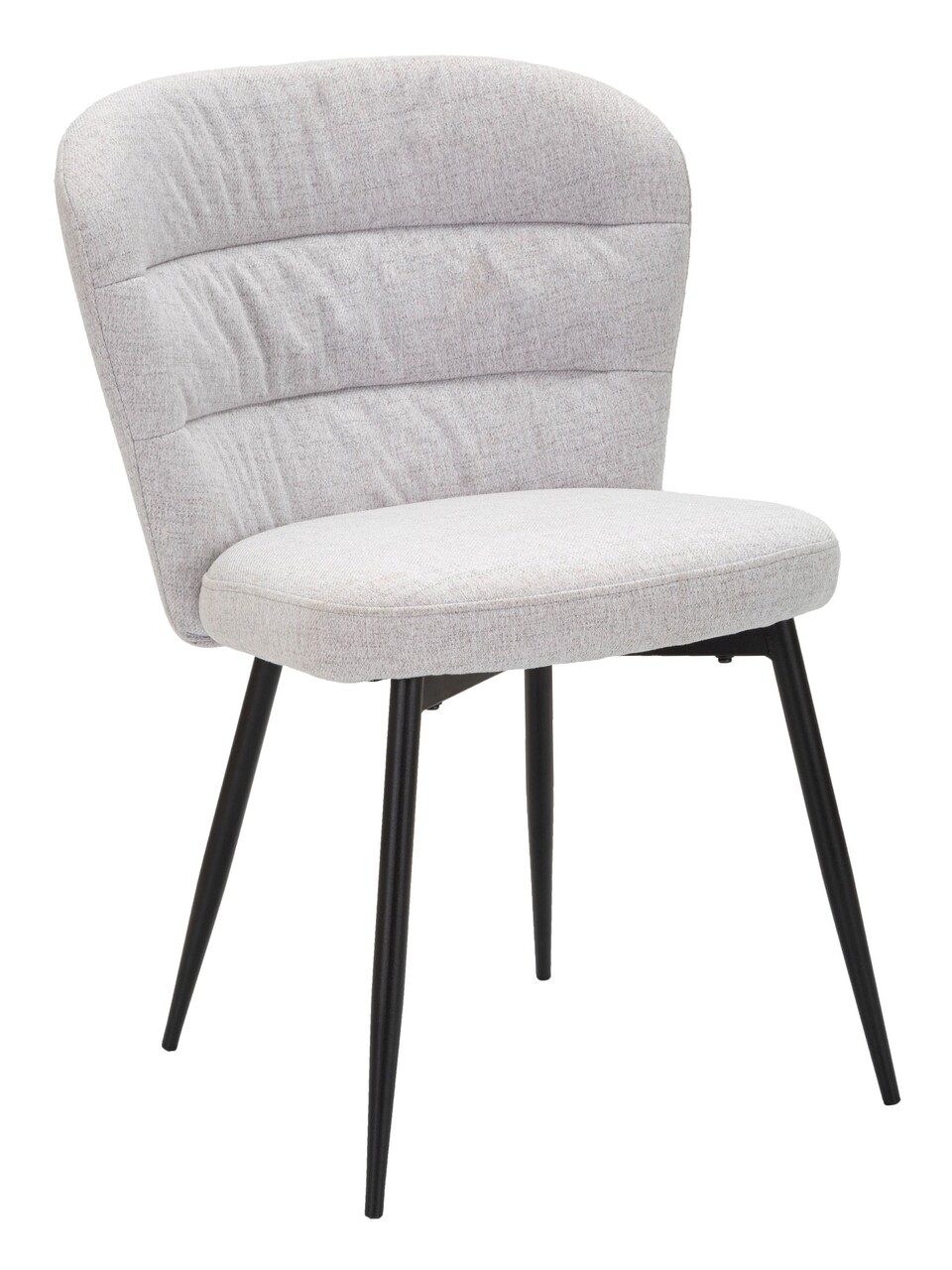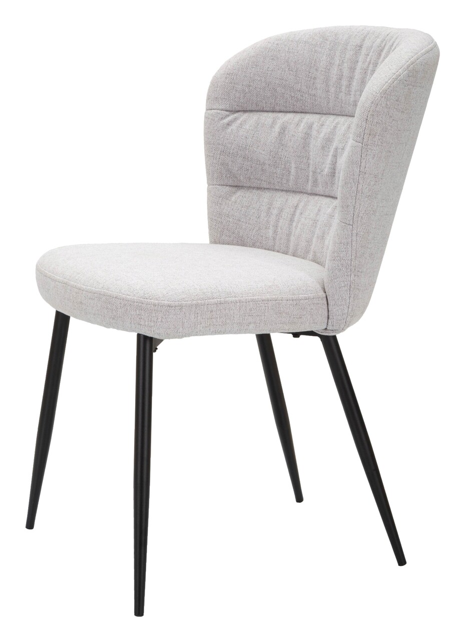 Set de 2 scaune tapitate cu linii care fac trimitere la designul anilor '70. Tesatura impreuna cu picioarele din metal negru dau o nota de eleganta oricarei incaperi.