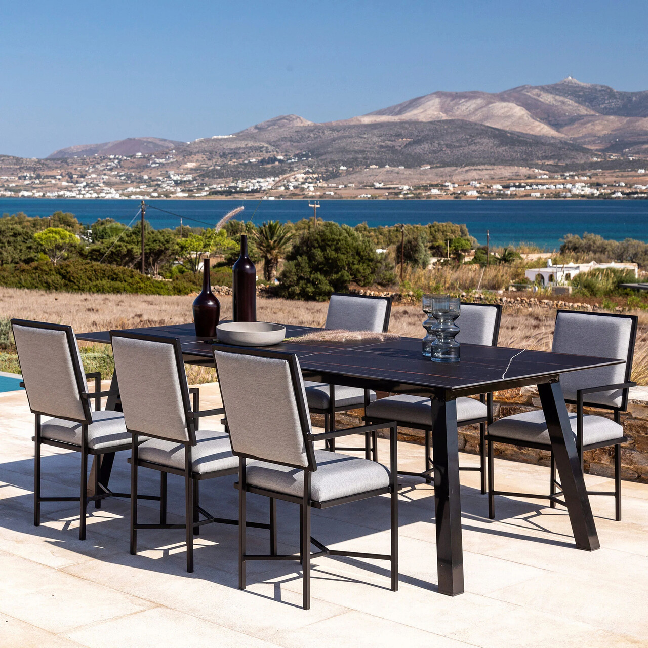 Set 2 scaune pentru exterior Evie, 59x50x90 cm, aluminiu, negru/gri