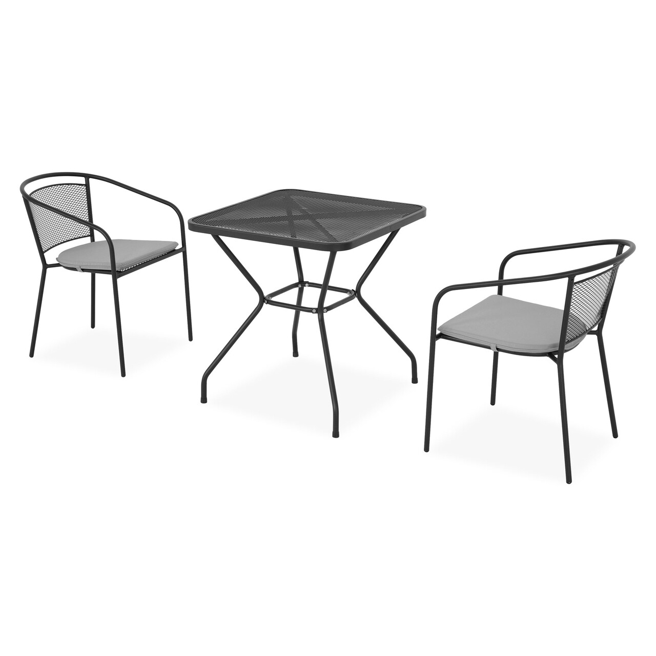 Set 2 scaune si masa patrata, Berlin, L.70 l.70 H.72 cm, negru/gri