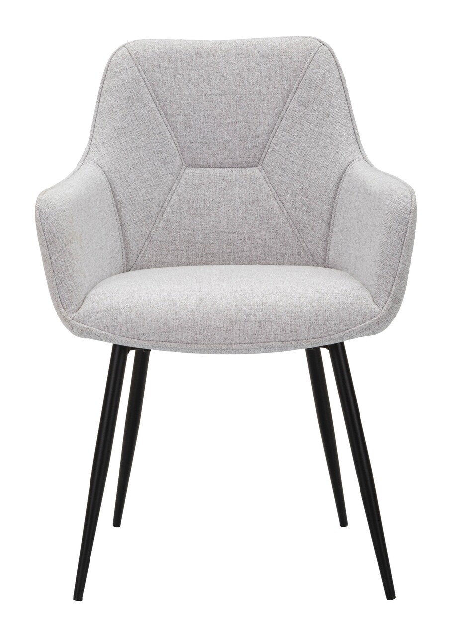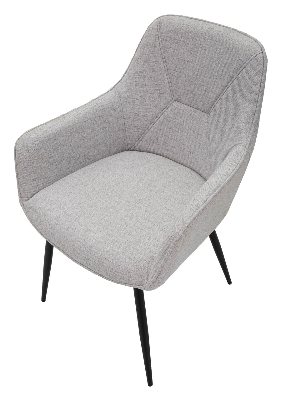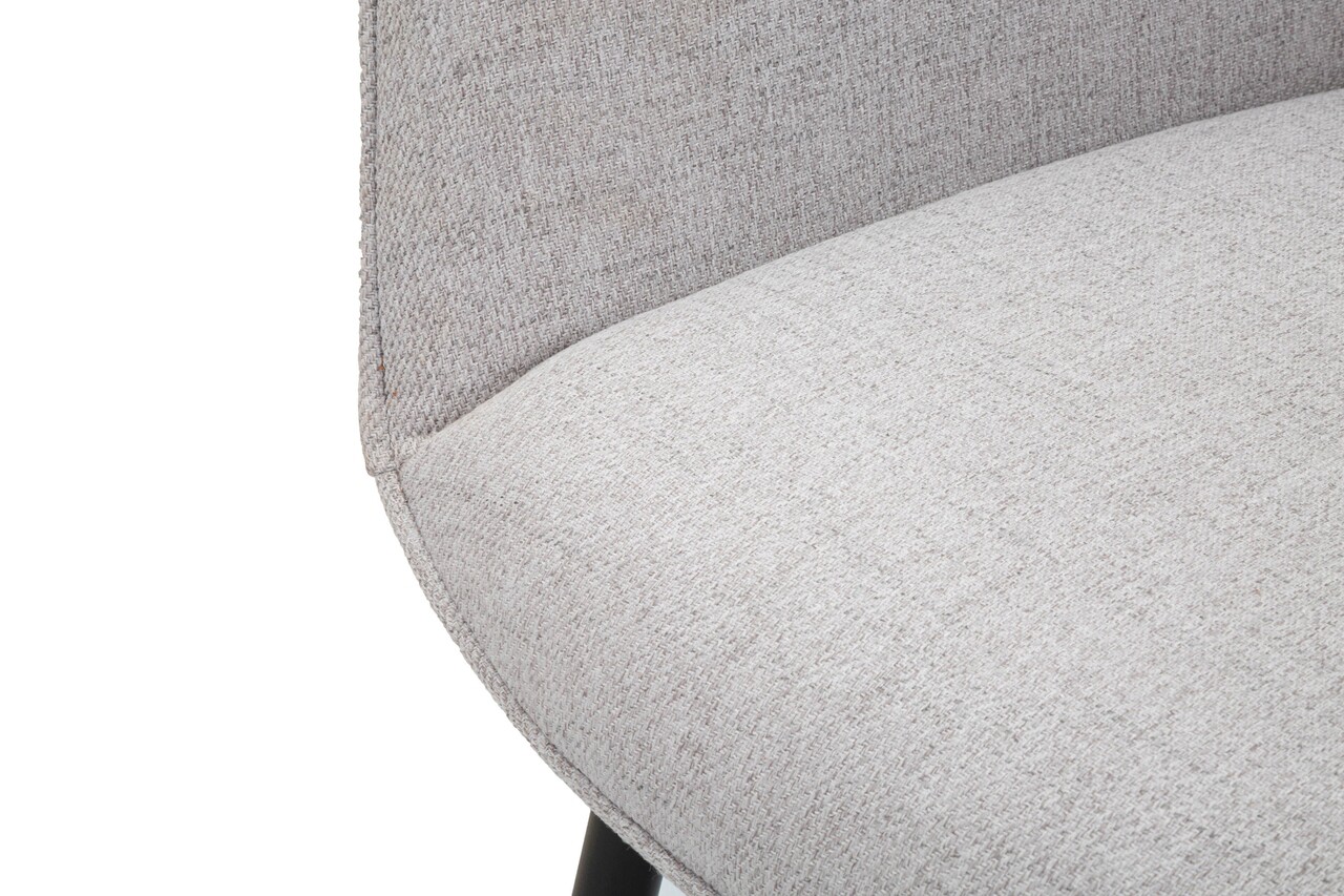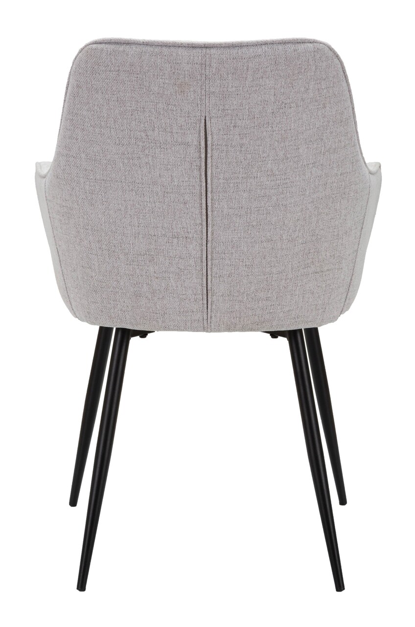 Set de 2 scaune din tesatura tapitata, cu cotiera practica. Tesatura impreuna cu picioarele din metal negru dau o nota de eleganta oricarei incaperi.