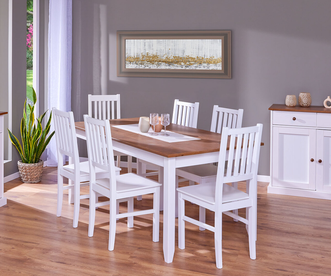 Lemn masiv robust, vopsit in alb, provenit din paduri gestionate sustenabil si responsabil. Fibra lemnului este inca usor vizibila, evidentiind caracterul natural al lemnului. Deoarece satisfactia clientilor este prioritatea noastra principala, toate piesele noastre de mobilier sunt fabricate in conformitate cu standardele de mediu si de calitate. Toate piesele noastre de mobilier sunt inovatoare, practice si durabile, asigurandu-le ca vor rezista multi ani de acum inainte.