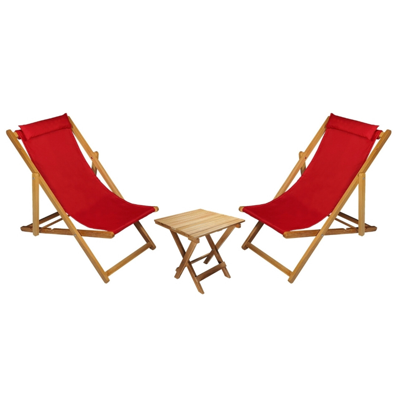 Set 2 sezlonguri cu masuta, My Interior, Sun, 90 x 59 x 80 cm, lemn de carpen, rosu