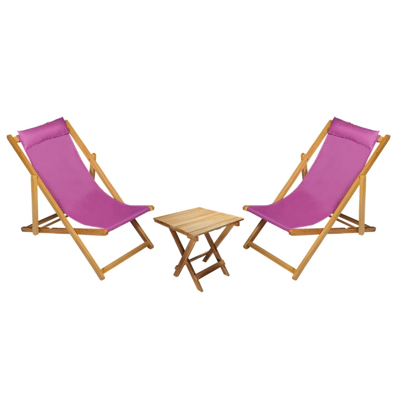 Set 2 sezlonguri cu masuta, My Interior, Sun, 90 x 59 x 80 cm, lemn de carpen, mov