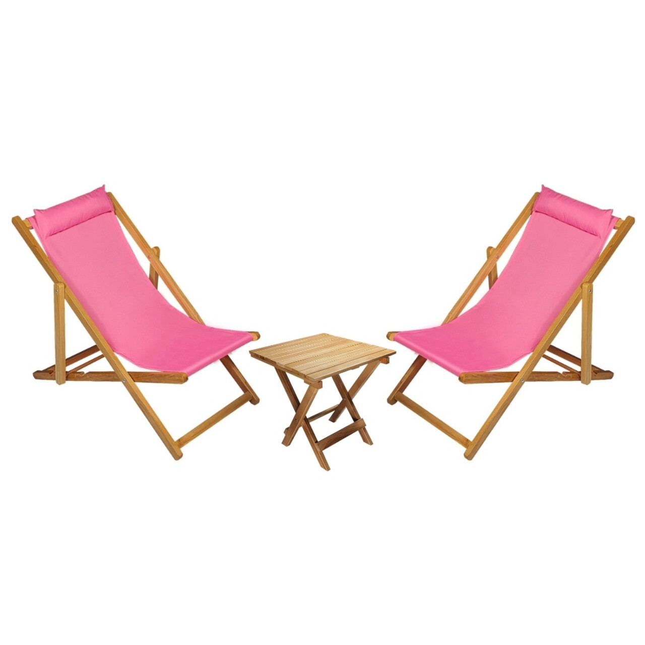 Set 2 sezlonguri cu masuta, My Interior, Sun, 90 x 59 x 80 cm, lemn de carpen, roz