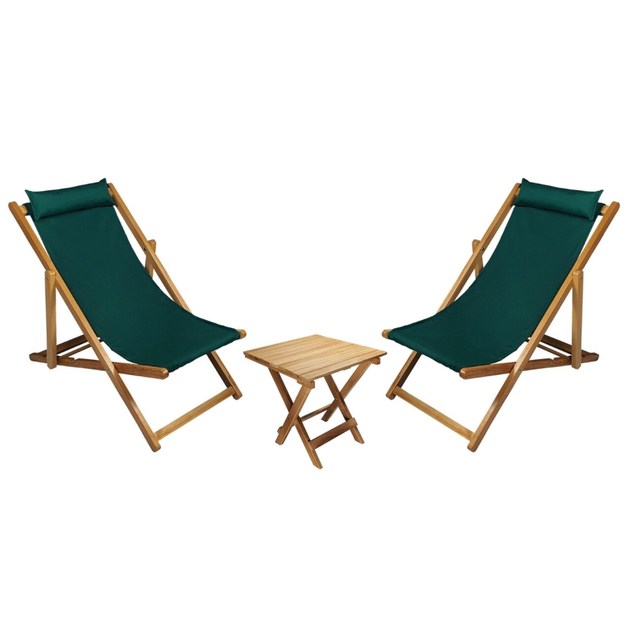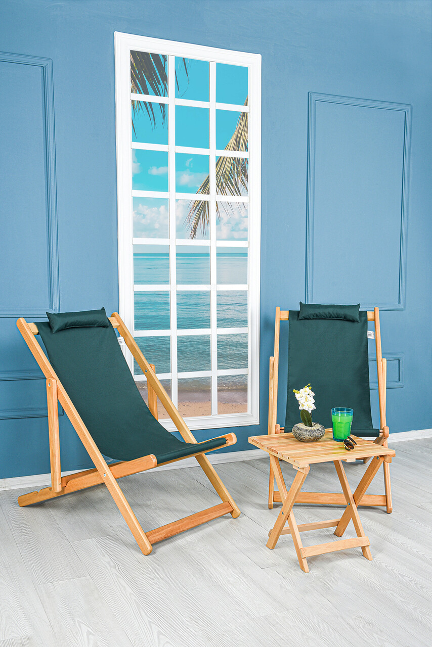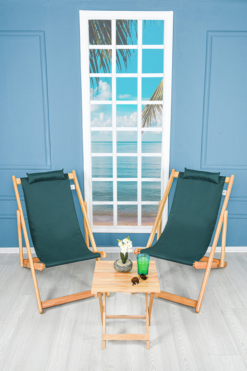 Set 2 sezlonguri cu masuta, My Interior, Sun, 90 x 59 x 80 cm, lemn de carpen, verde