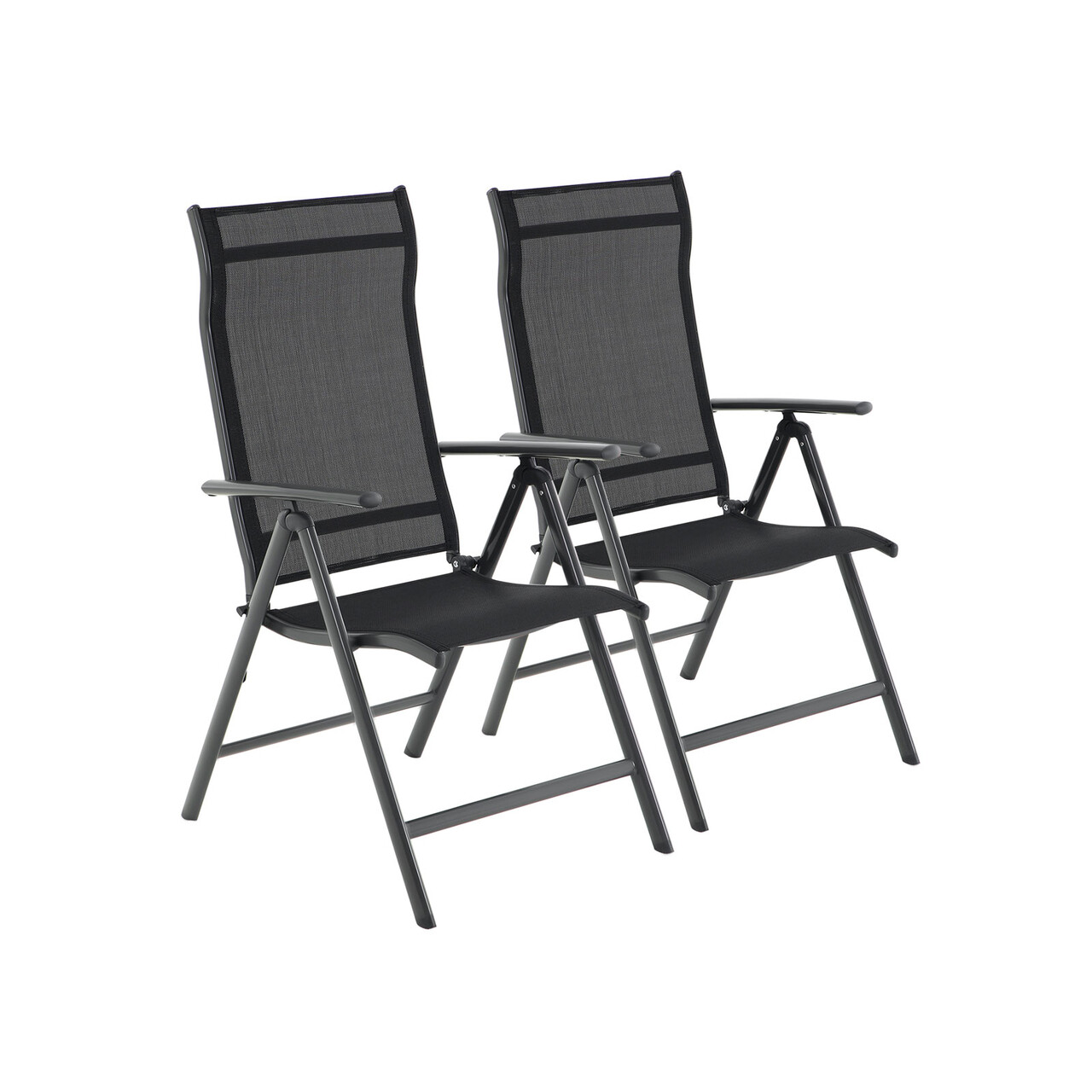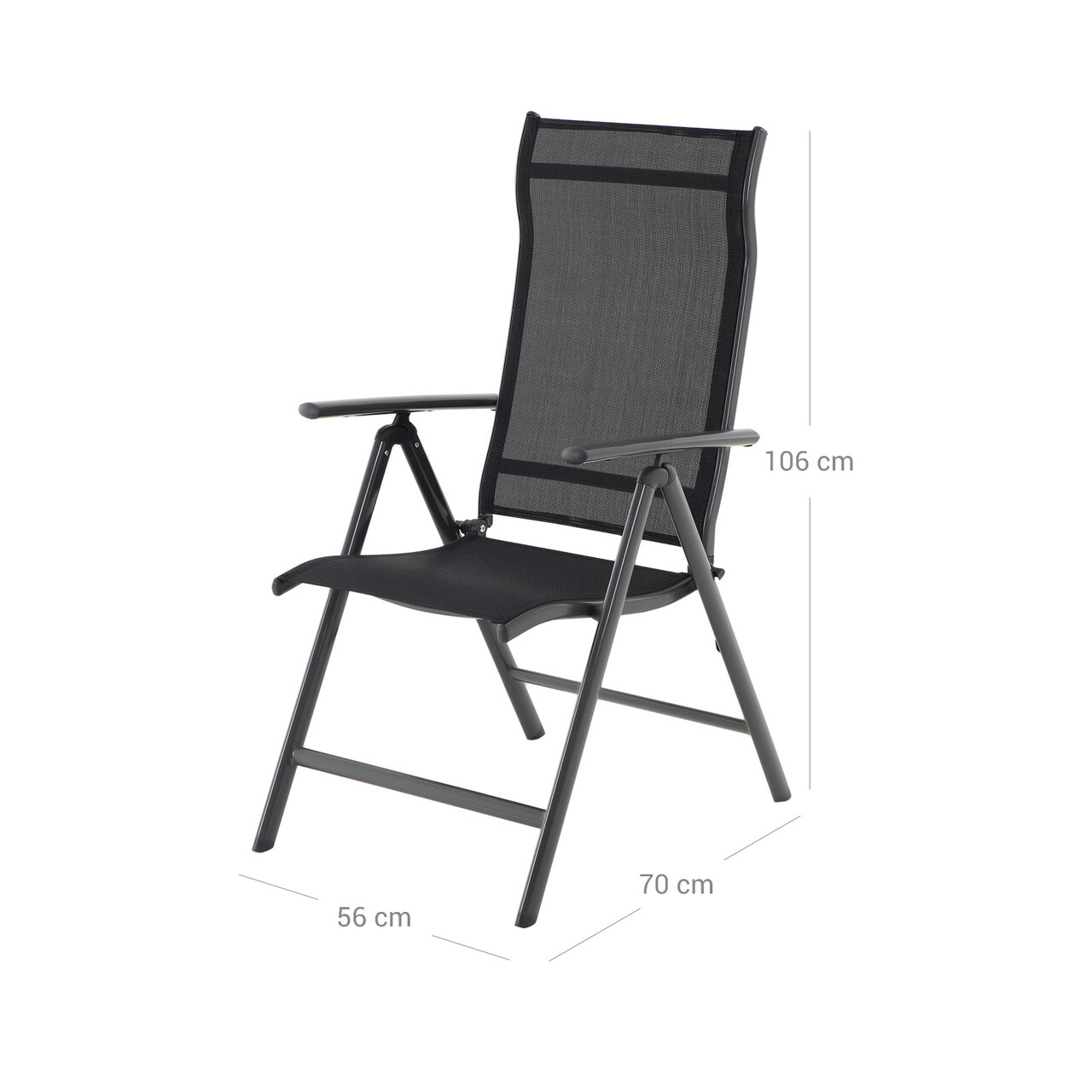Set 2 sezlonguri pentru gradina/terasa, Songmics, 56x70x106 cm, max 150 kg, aluminiu/tesatura sintetica, negru
