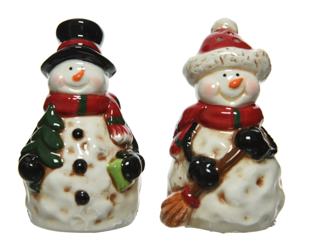 Set 2 solnite pentru sare si piper Snowman, Decoris, ceramica, multicolor