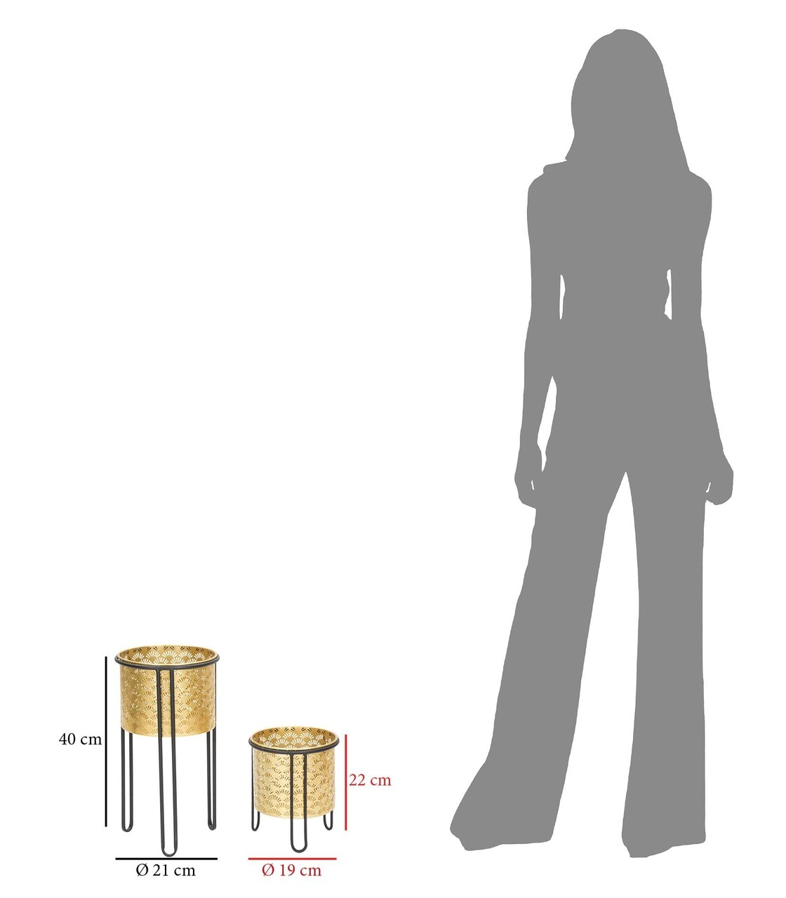 Set 2 suportui pentru ghivece Glissy, Mauro Ferretti, Ø 21x40 cm, fier, auriu