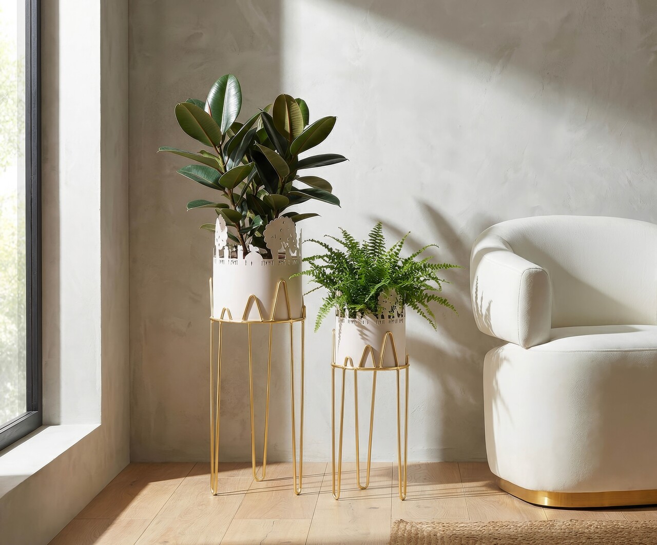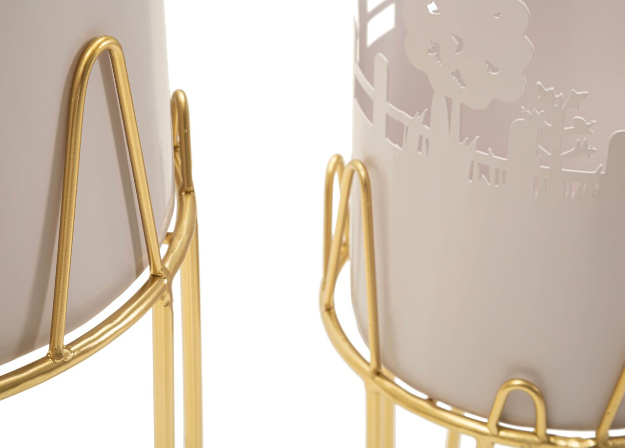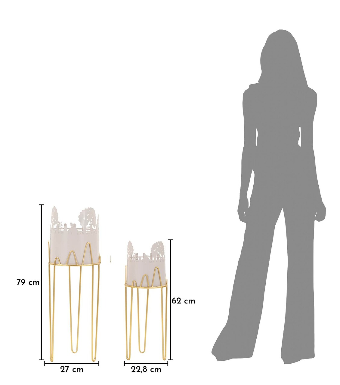 Set 2 suporturi pentru ghivece, Mauro Ferretti, Tree, 27x27x79 cm, metal, gri/auriu