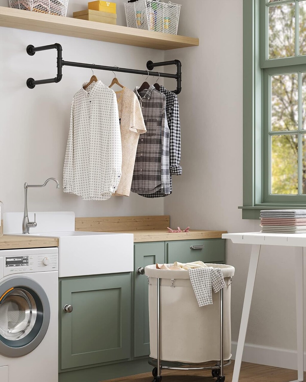 Set 2 suporturi pentru haine cu fixare pe perete Industrial Pipe, Songmics, 110x30x29.3 cm, max 60 kg, otel, negru