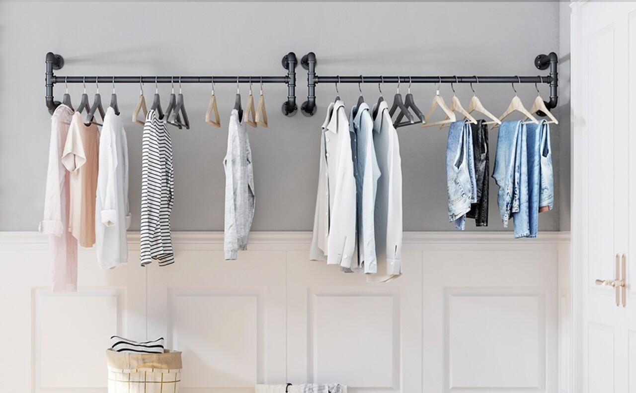 Sunt potrivite pentru toate tipurile de umerase. Distanta dintre perete si sina de haine este de 30 cm. Asadar, puteti agata aproape toate umerasele pe cuier fara grija ca hainele se vor atinge de perete.