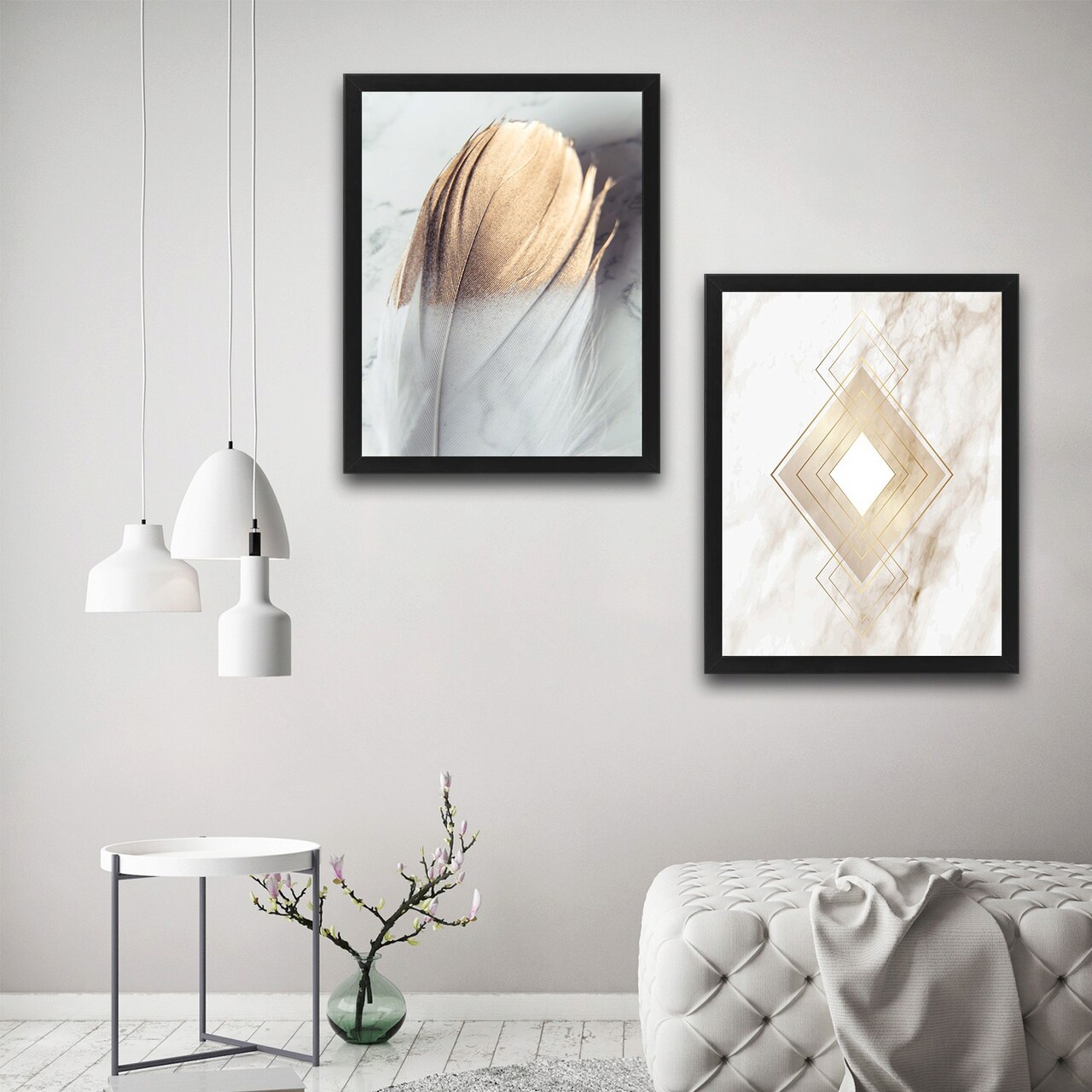 Set 2 tablouri decorative, Gold 1 Set, PAL, Hartie, Multicolor
