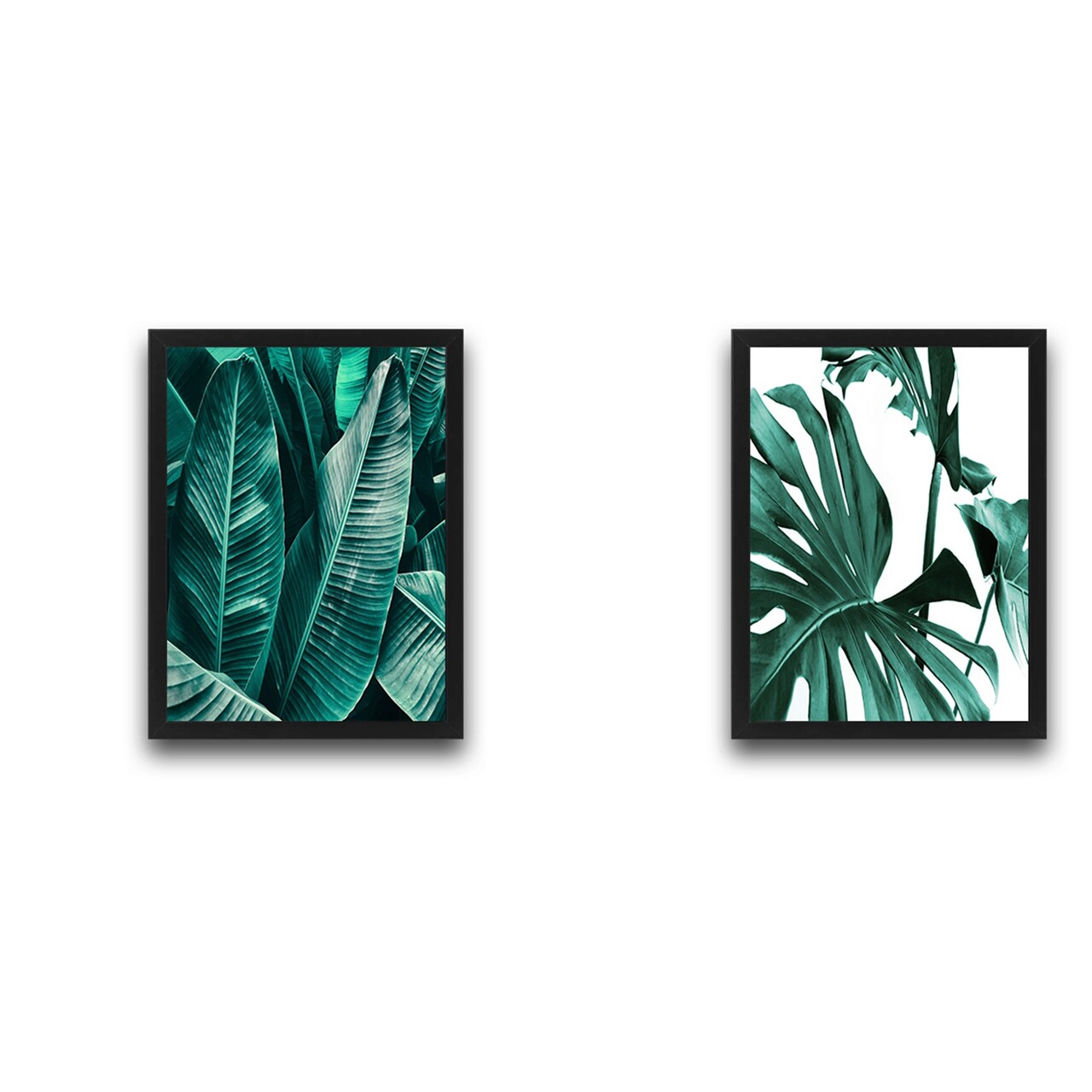 Set 2 tablouri decorative, Green Leaf Set, PAL, Hartie, Multicolor