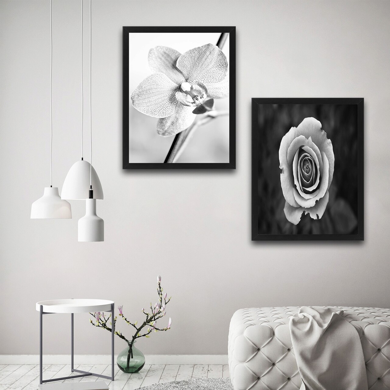 Set 2 tablouri decorative, Grey Flower Set, PAL, Hartie, Multicolor