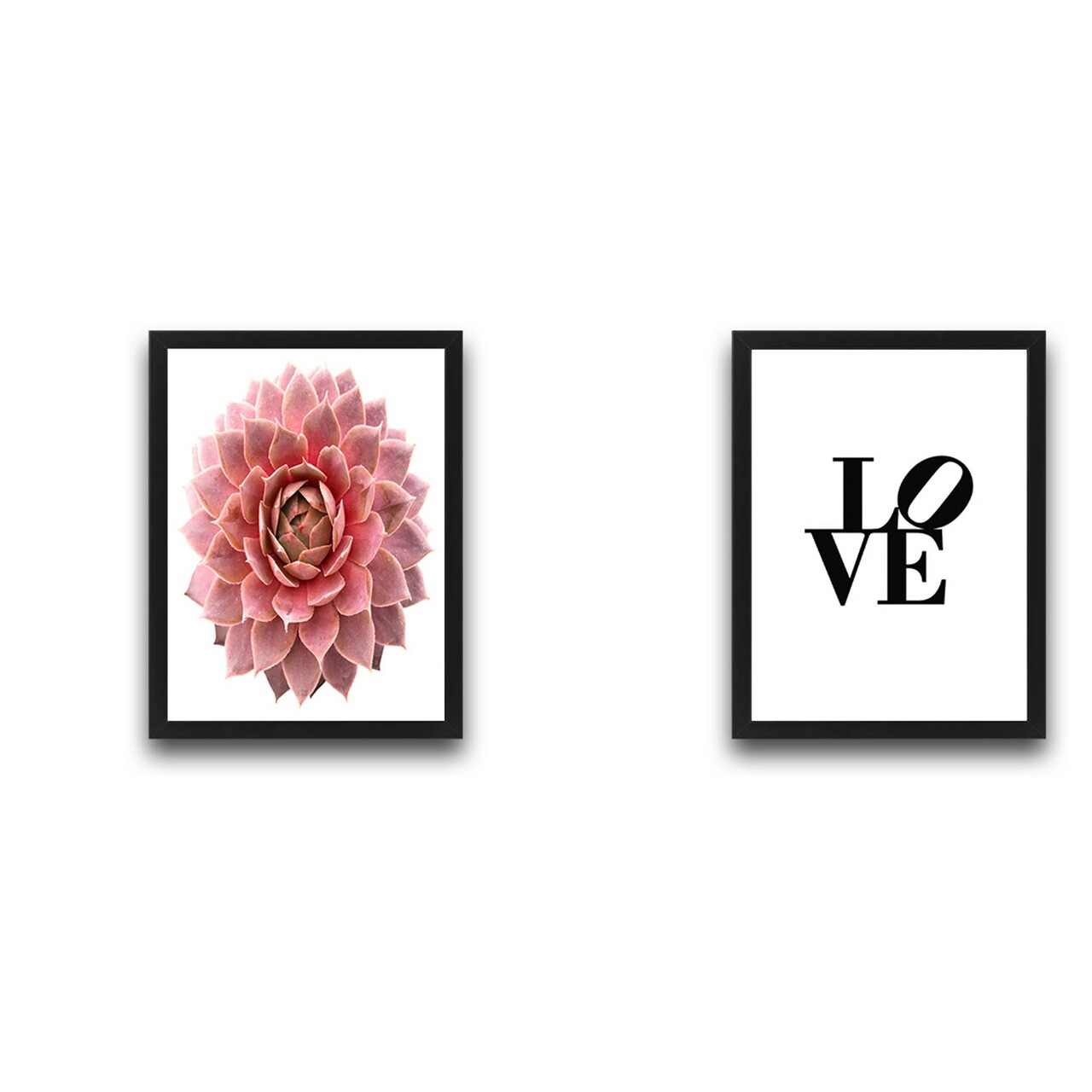Set 2 tablouri decorative, Love Pink Flower Set, PAL, Hartie, Multicolor
