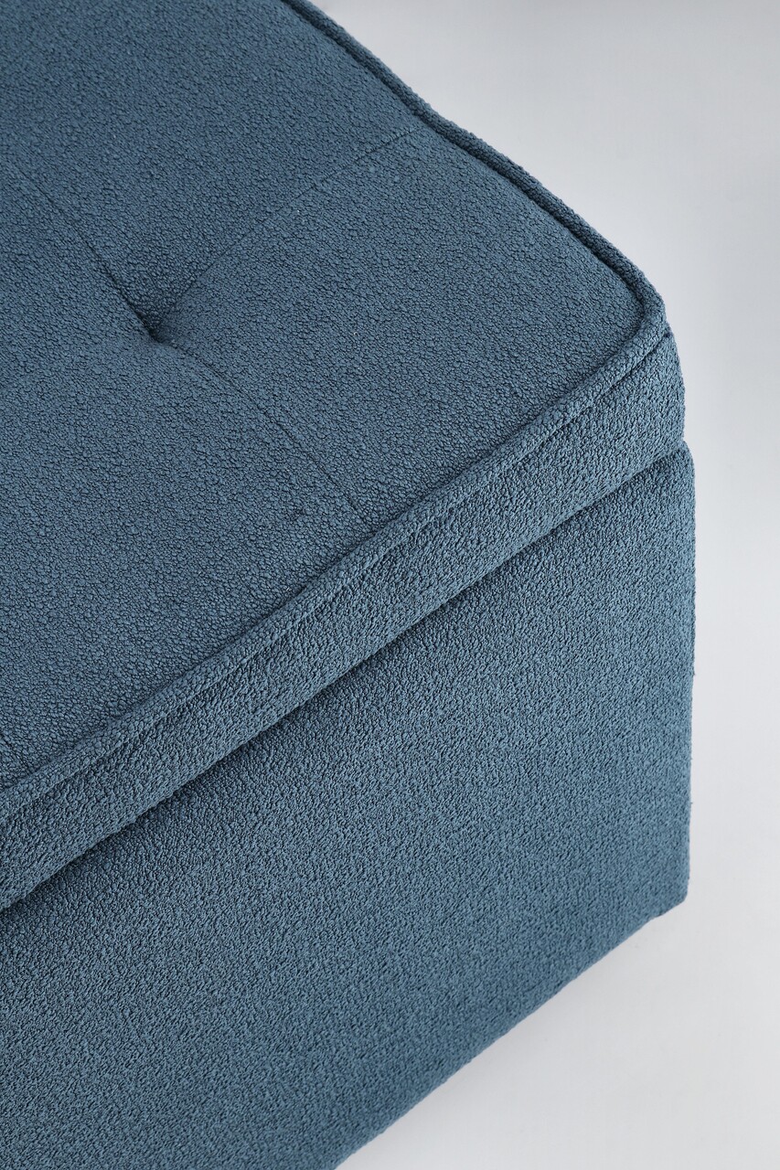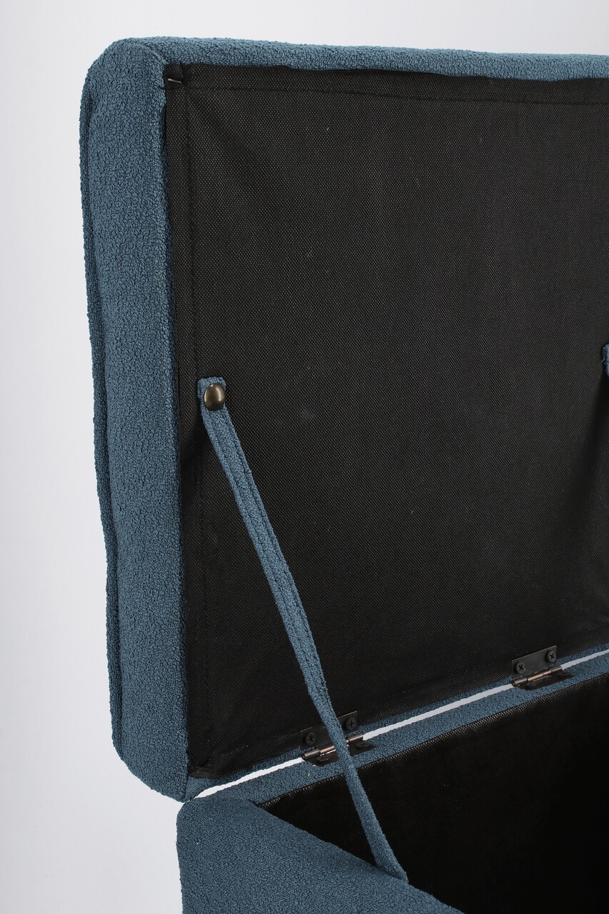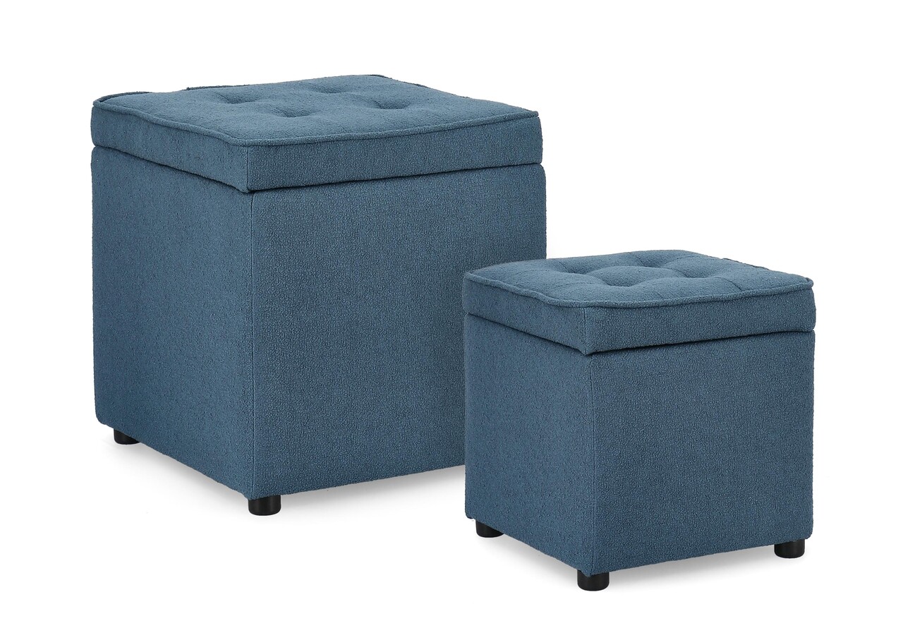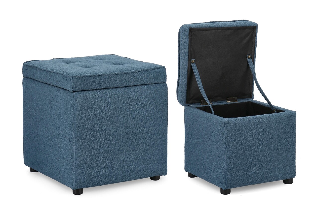 Set 2 taburete cu spatiu de depozitare Derrick, Bizzotto, 35x35x35 cm/45x45x45 cm, lemn de pin/poliester Boucle, albastru
