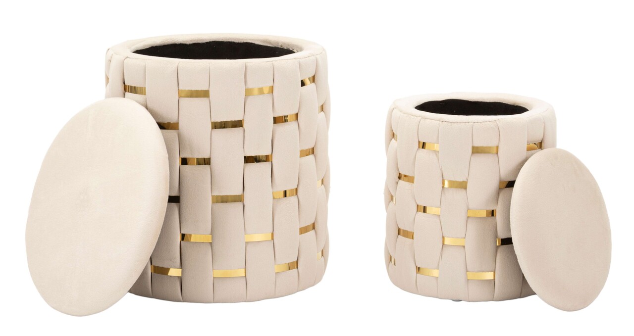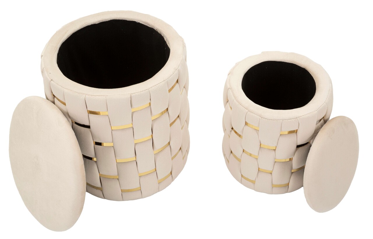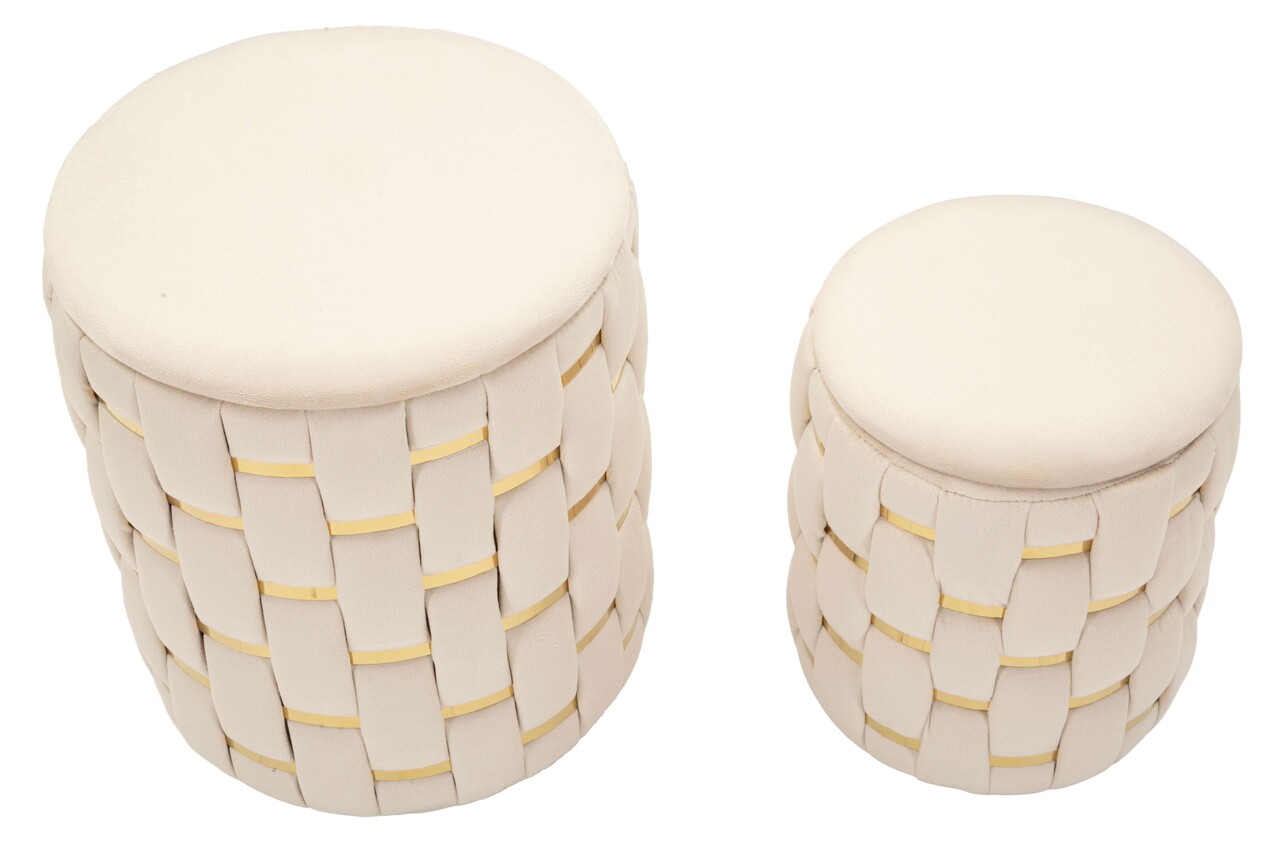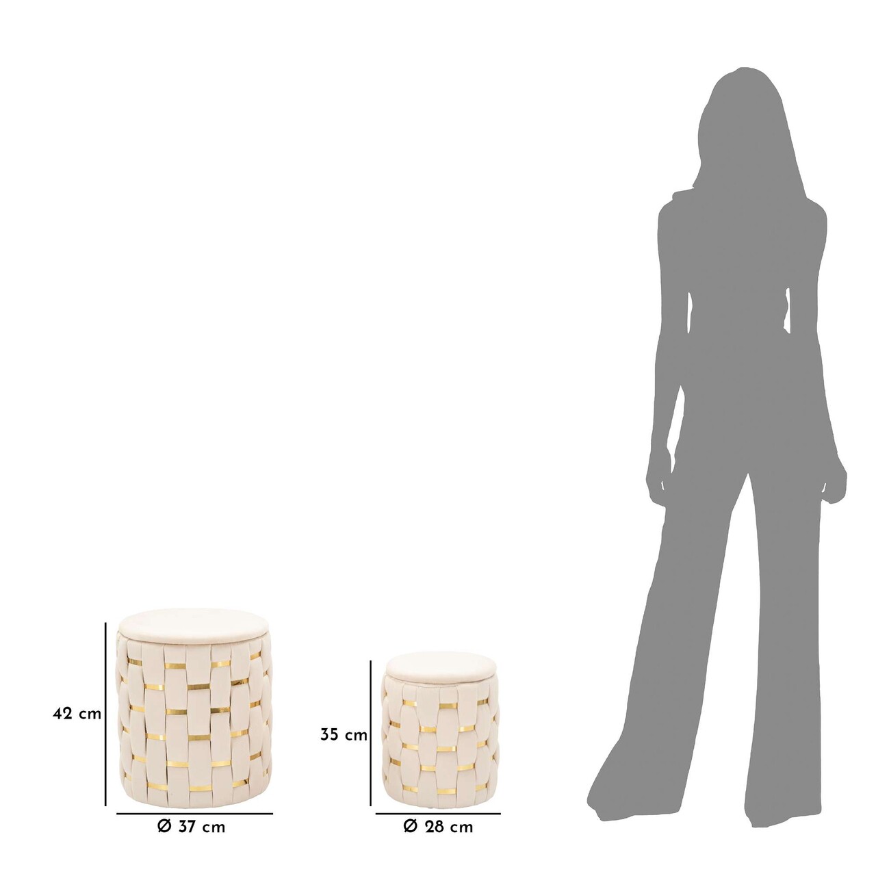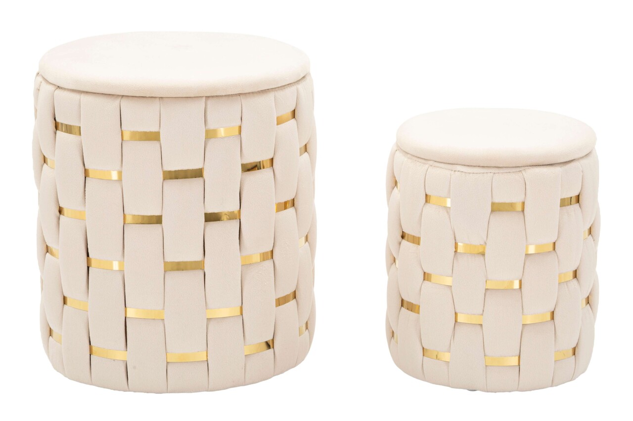 Set 2 taburete cu spatiu depozitare Shanty, Mauro Ferretti, 37x42 cm, 28x35 cm, fier/MDf/poliester, crem/auriu