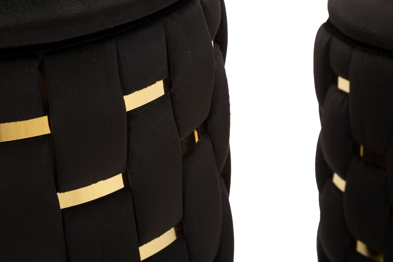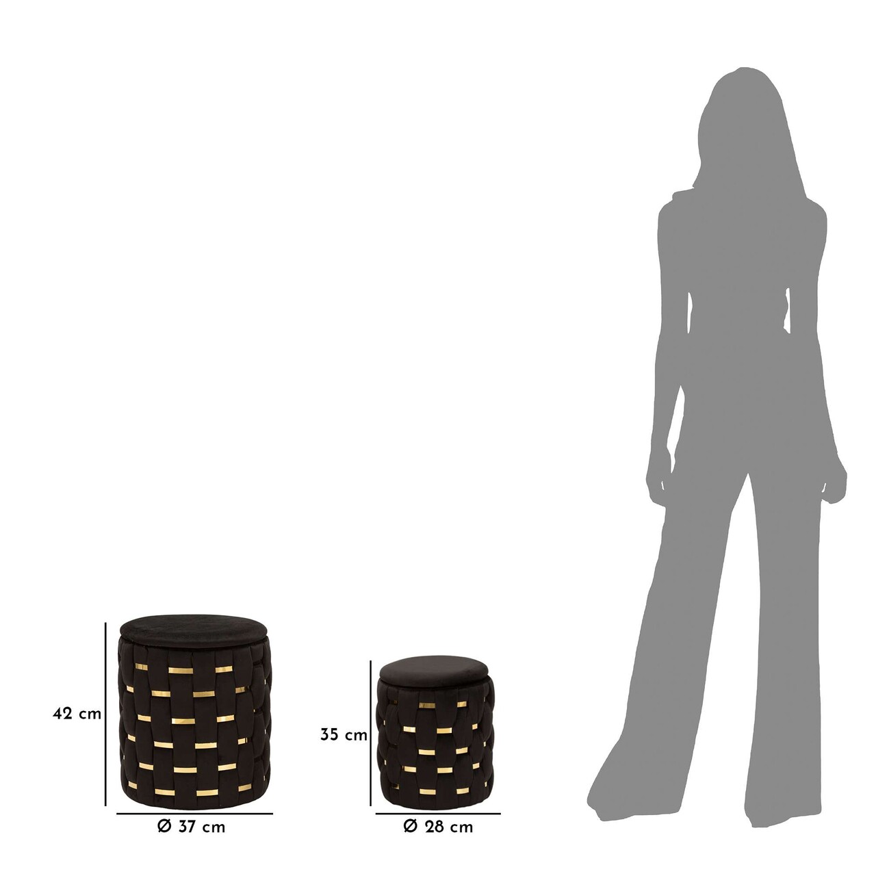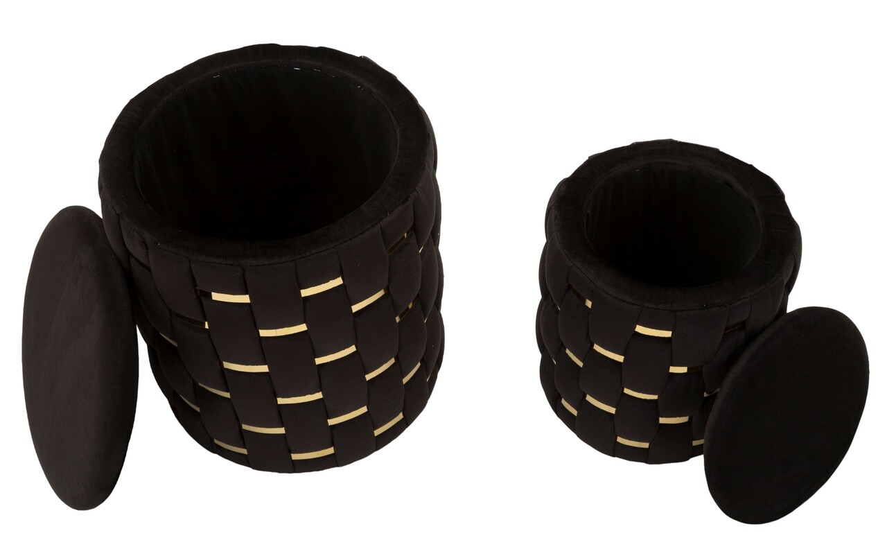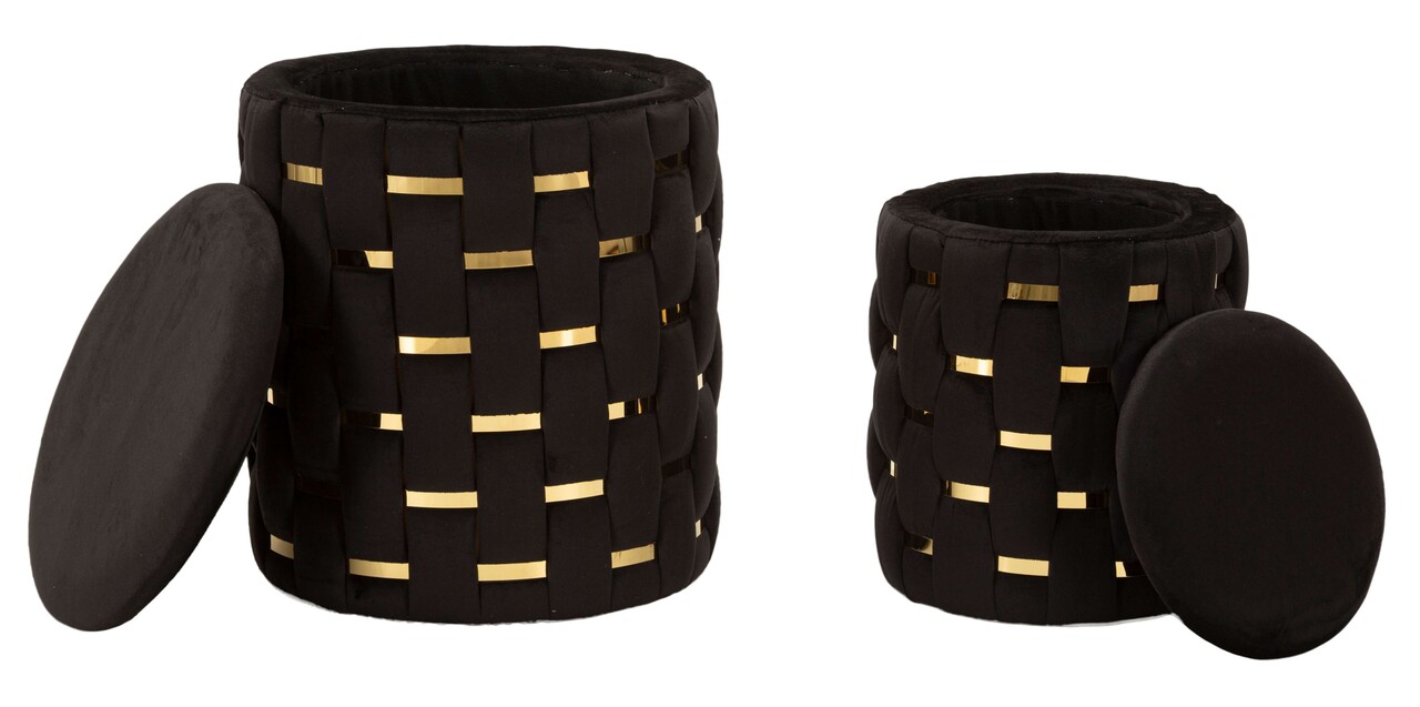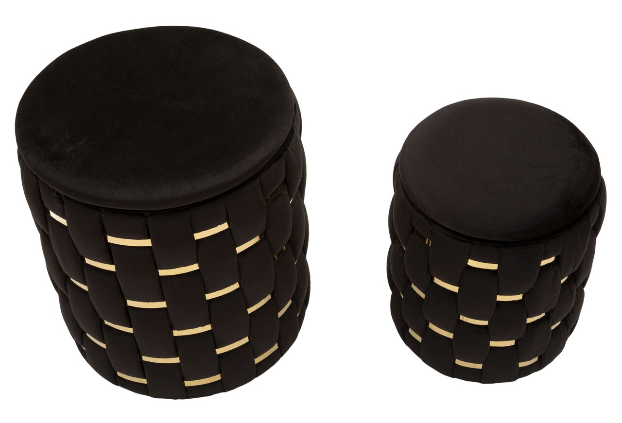 Set 2 taburete cu spatiu depozitare Shanty, Mauro Ferretti, 37x42 cm, 28x35 cm, fier/MDf/poliester, negru/auriu