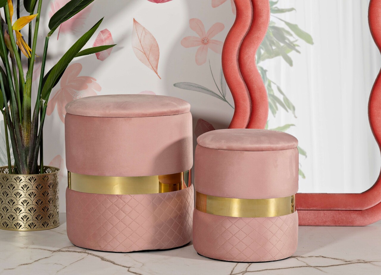 Set 2 taburete cu spatiu depozitare Sheffild, Mauro Ferretti, 37x42 cm, 28x35 cm, fier/MDf/poliester, roz