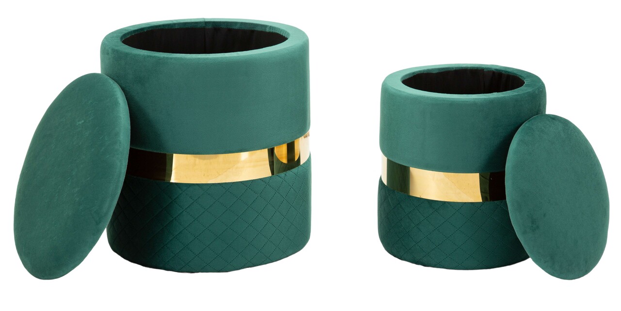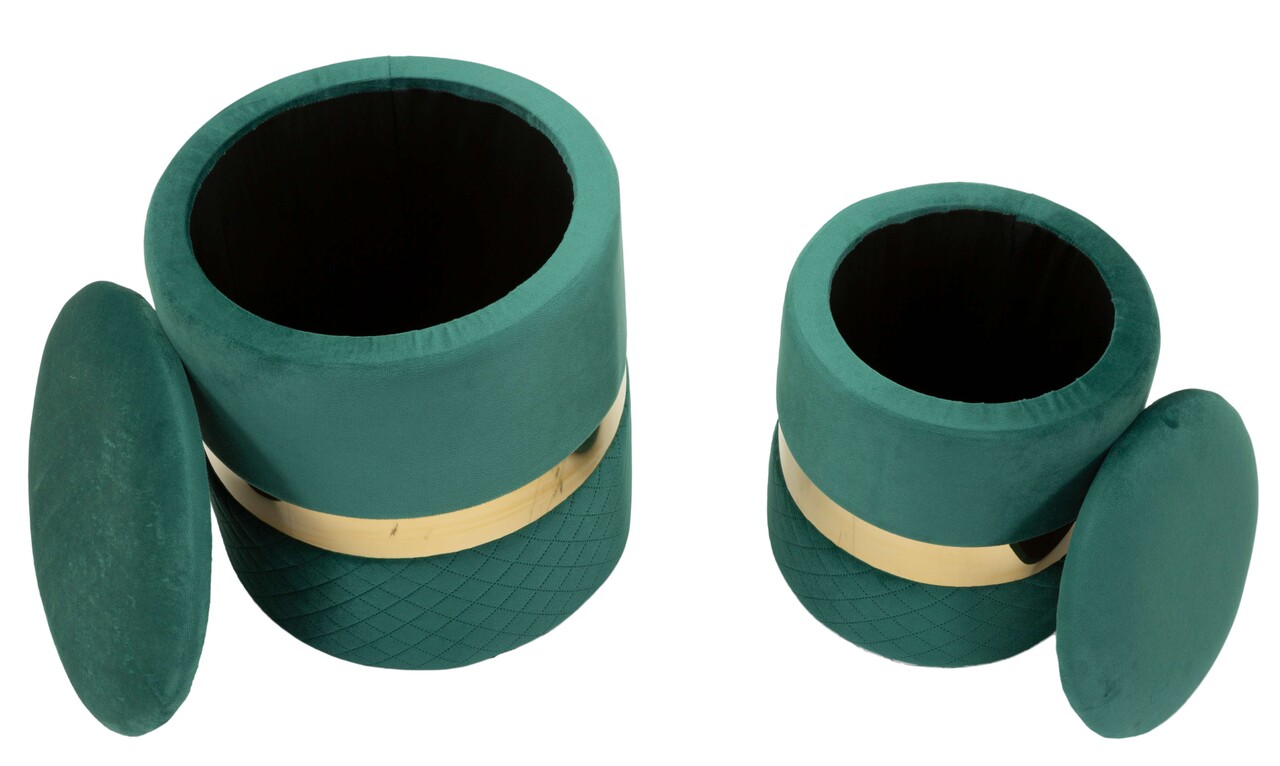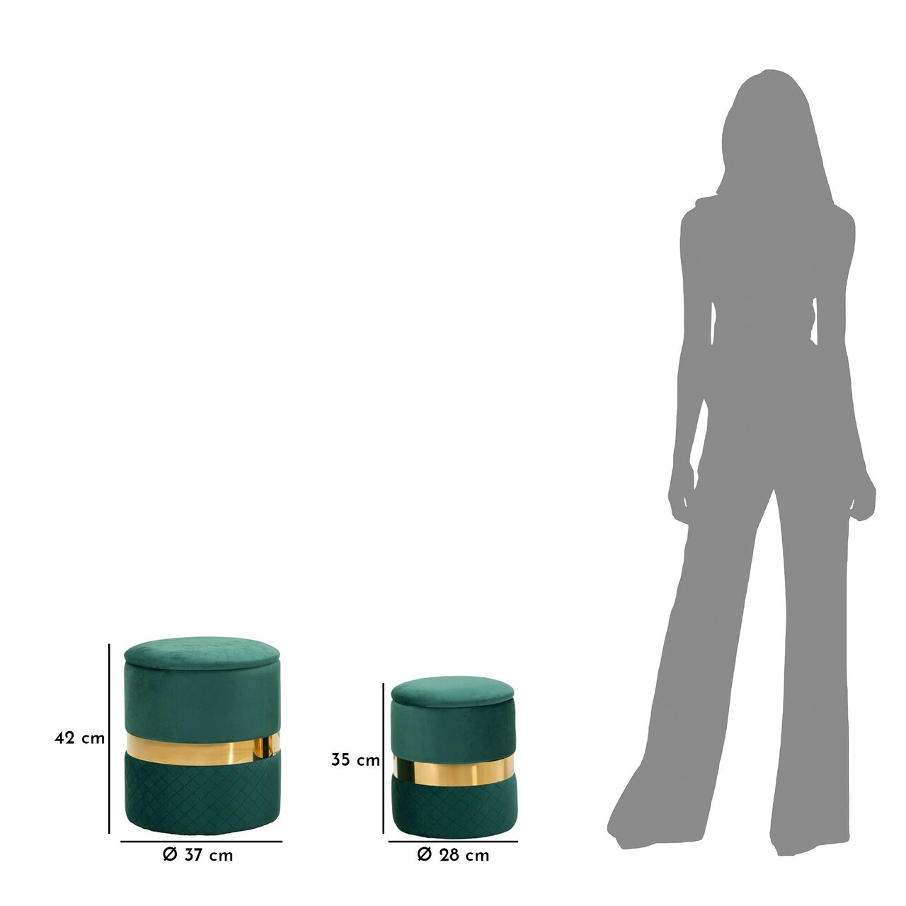 Set 2 taburete cu spatiu depozitare Sheffild, Mauro Ferretti, 37x42 cm, 28x35 cm, fier/MDf/poliester, verde