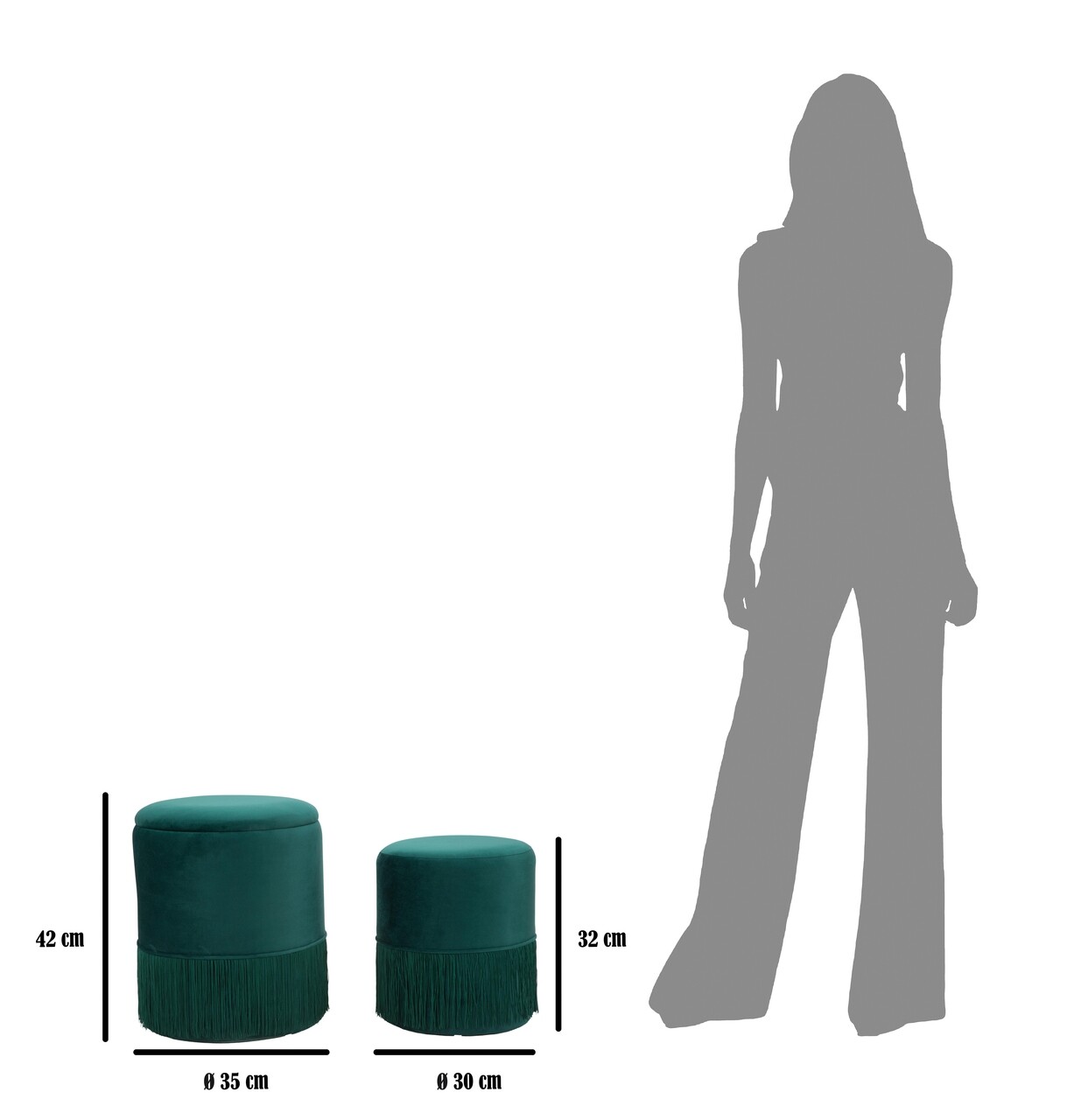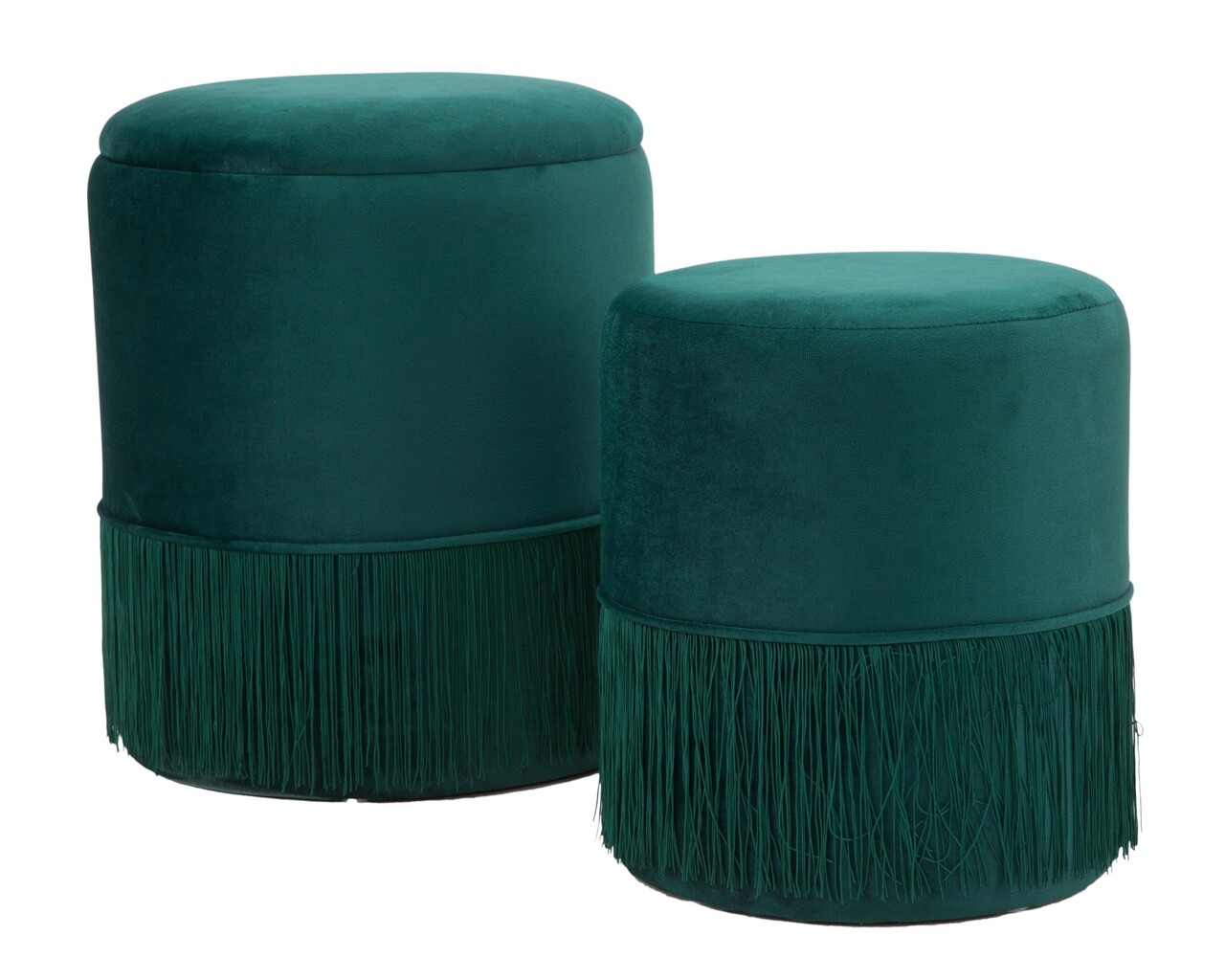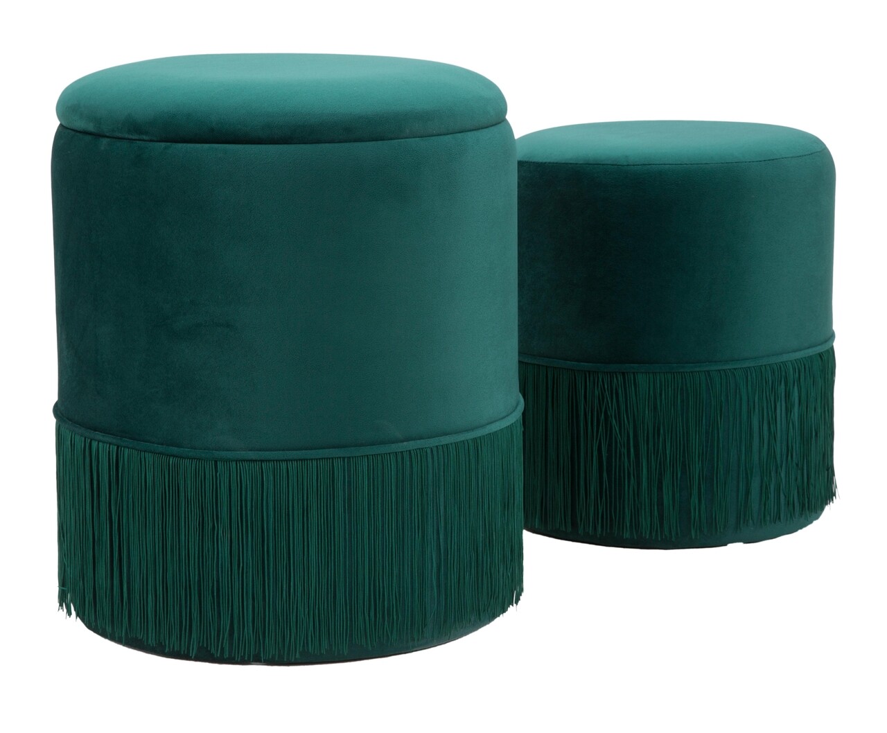 Set 2 taburete cu spatiu pentru depozitare Couple, Mauro Ferretti, catifea, verde inchis