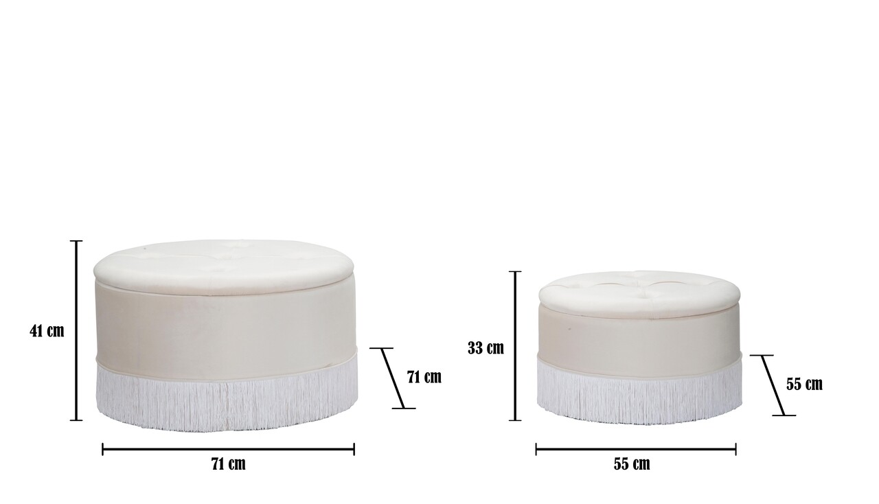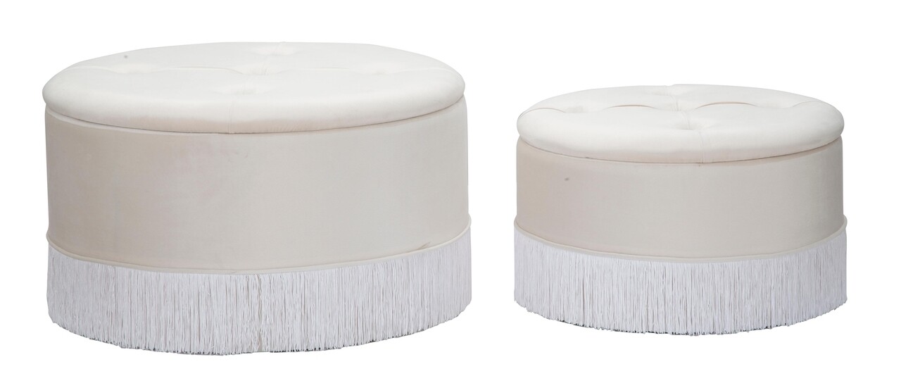 Set 2 taburete cu spatiu pentru depozitare Lines, Mauro Ferretti, catifea, crem
