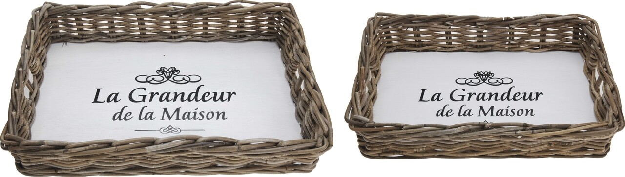 Set 2 tavi La Grandeur de la Maison, 53 x 37 x 10 cm si 47 x 30 x 9 cm, MDF si lemn de salcie, alb/maro