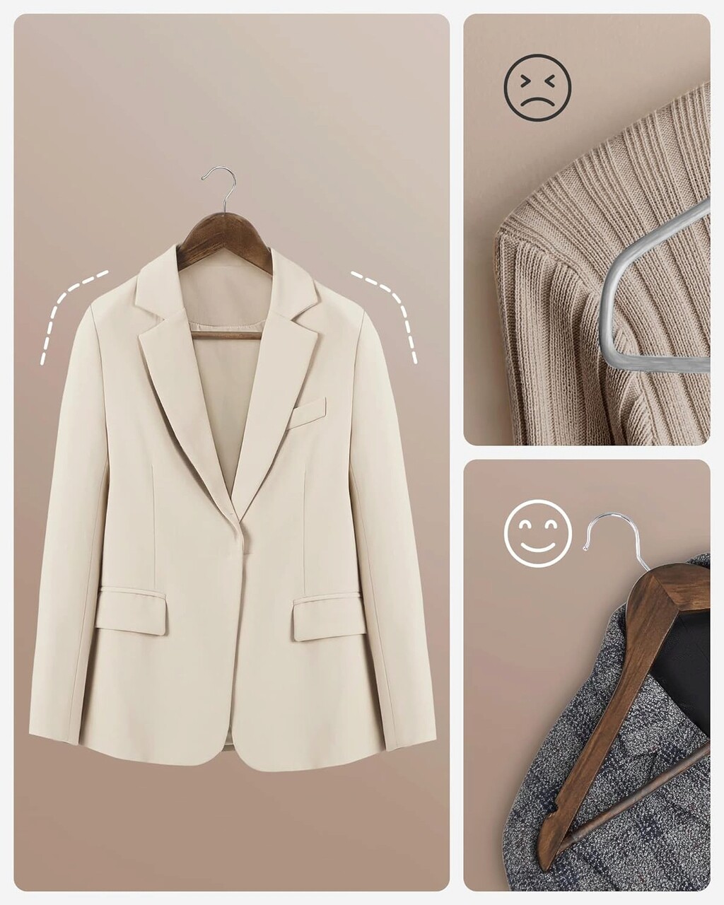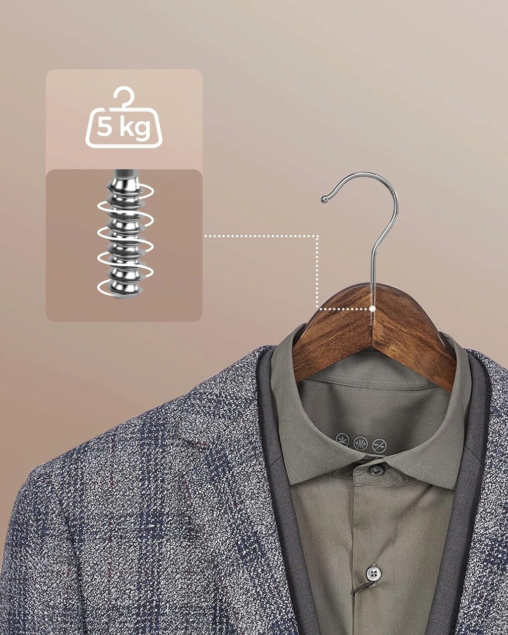 Rezistenta si durabilitate Confectionate din lemn de artar de inalta calitate, aceste umerase sunt solide si durabile si pot agata haine din toate anotimpurile, inclusiv jachete sau paltoane de iarna cu o greutate de pana la 5 kg.
