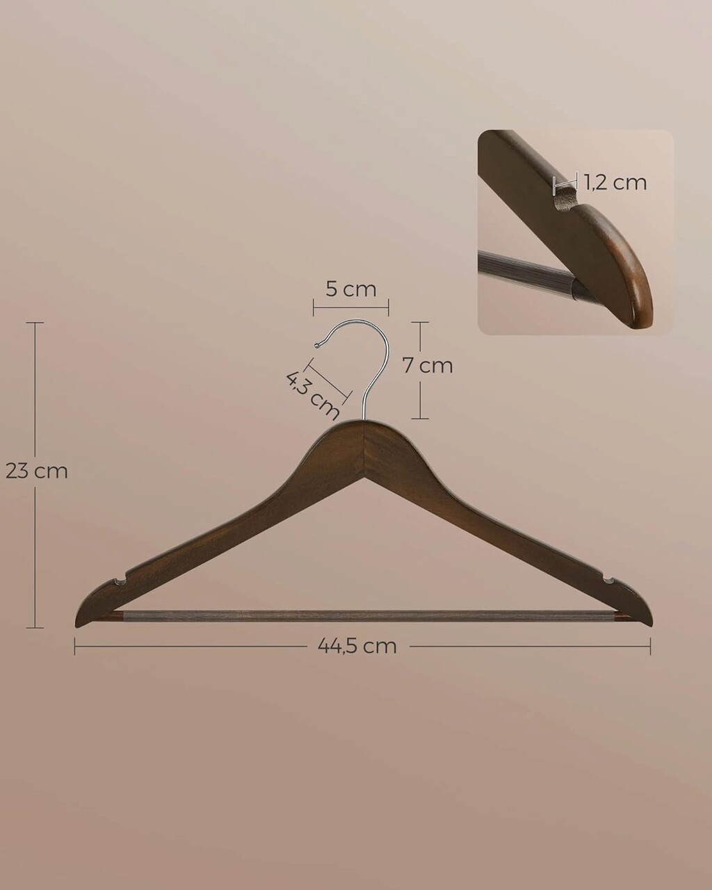 Set 20 de umerase din lemn masiv de artar Songmics, 44.5x1.2x23 cm, max 5 kg, maro inchis