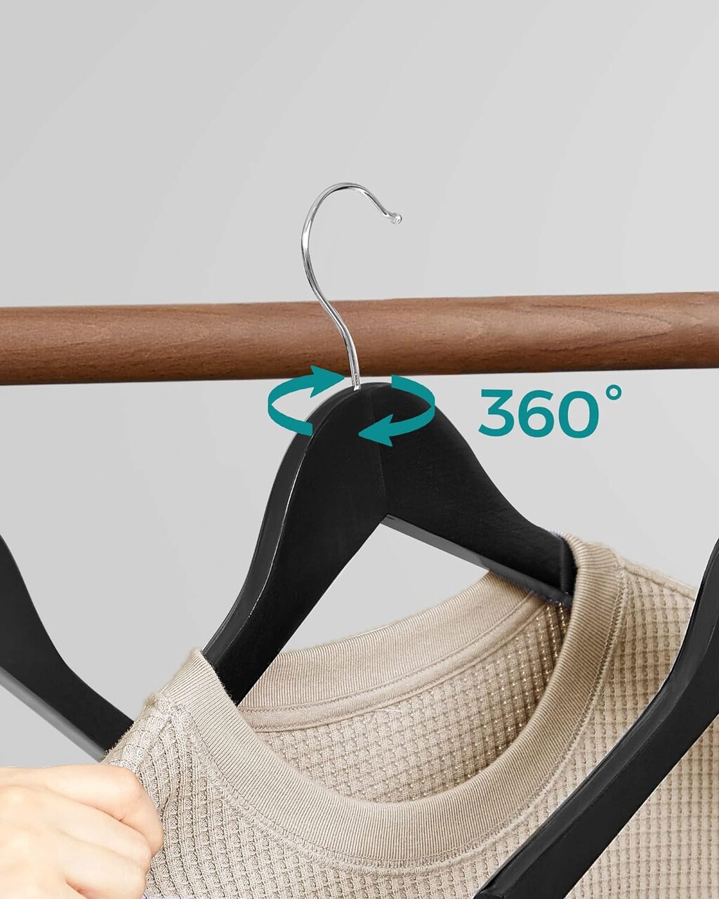 Carlige pivotante Carligele metalice de inalta calitate de pe aceste umerase se rotesc la 360°, astfel incat, chiar daca va agatati din neatentie hainele in directia gresita, acestea pot fi schimbate cu usurinta.