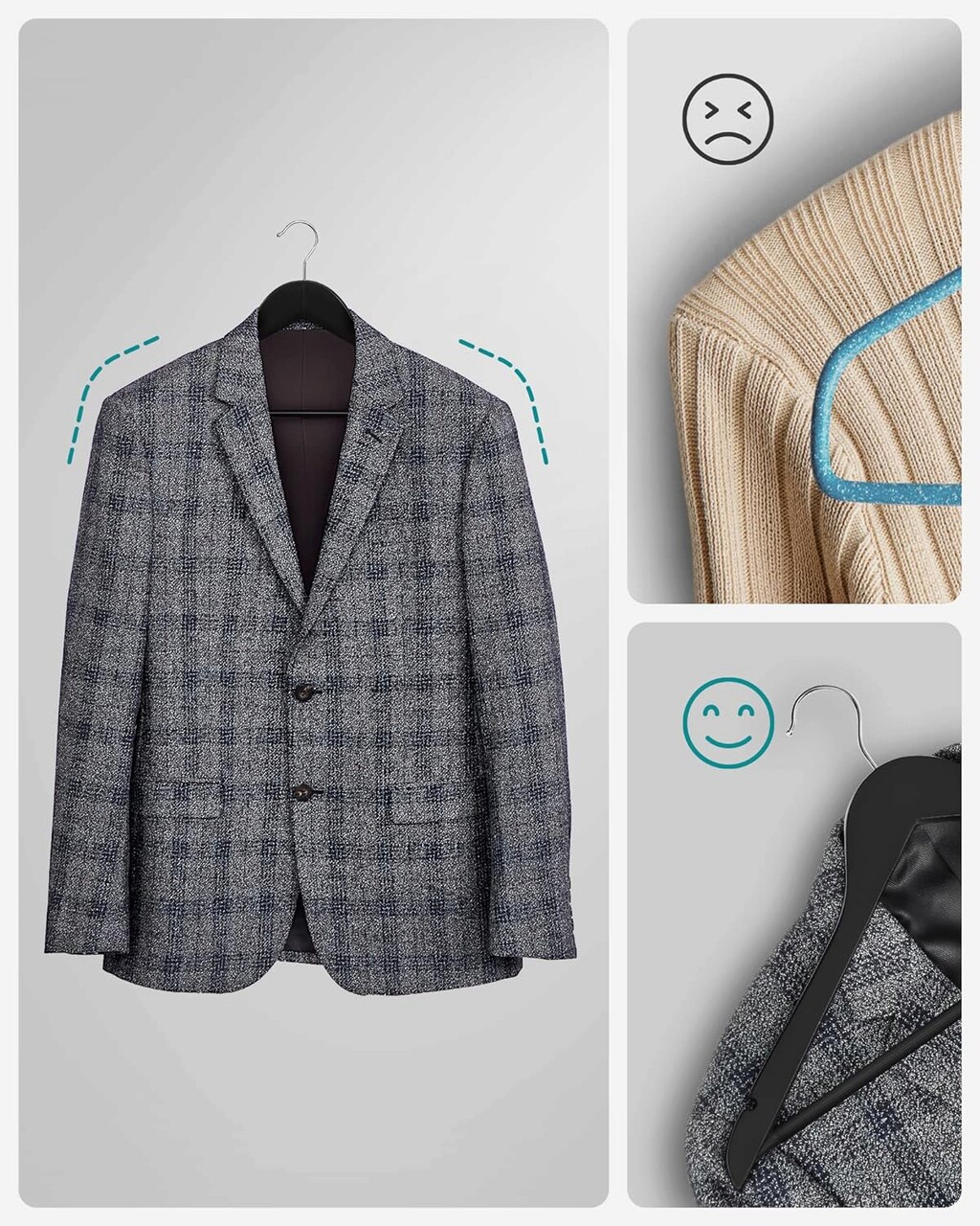 Rezistenta si durabilitate Confectionate din lemn de artar de inalta calitate, aceste umerase sunt solide si durabile si pot agata haine din toate anotimpurile, inclusiv jachete sau paltoane de iarna cu o greutate de pana la 5 kg.