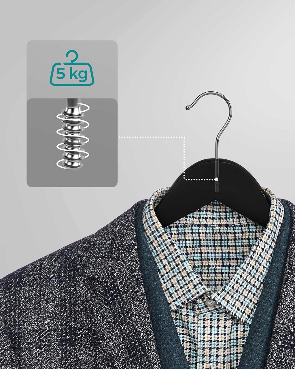 Set 20 de umerase din lemn masiv de artar Songmics, 44.5x1.2x23 cm, max 5 kg, negru