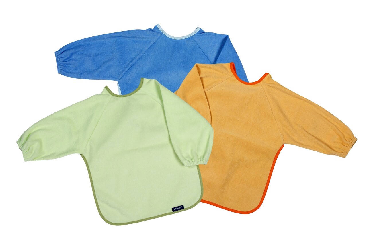 Setul de 3 bavete cu maneci bebeluca sunt special create pentru aceasta perioada delicata si plina de necunoscut. Hainutele copilului sunt protejate, iar el poate sa experimenteze si sa se miste in voie.