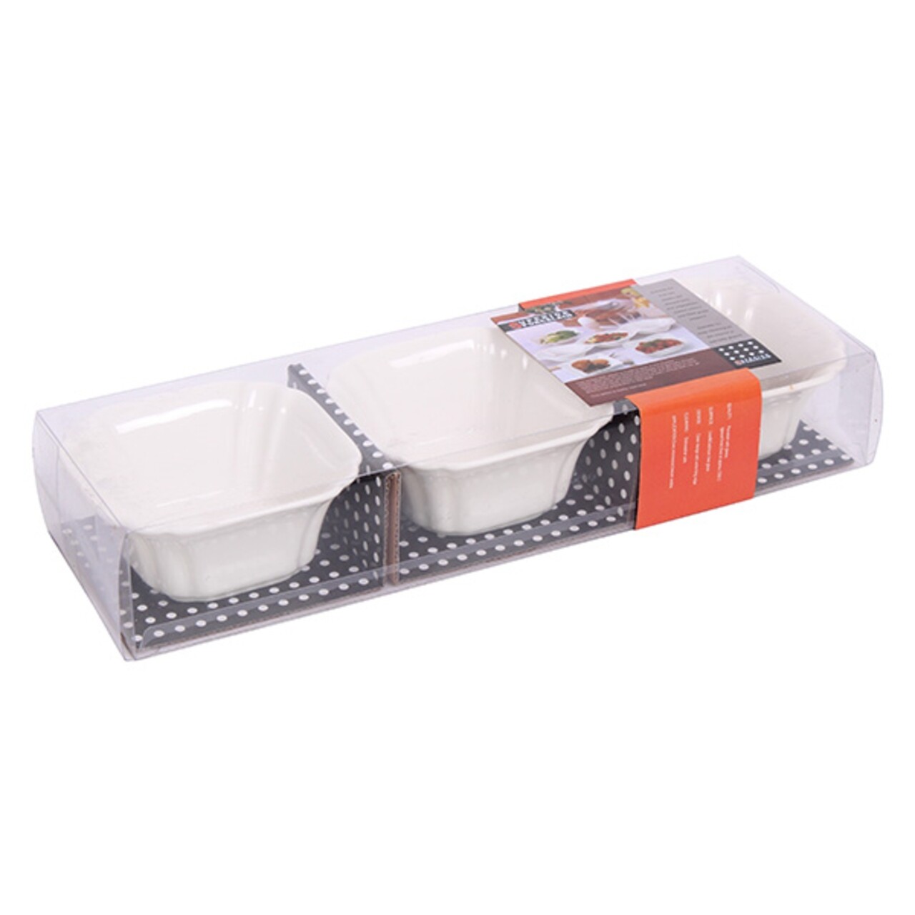 Set 3 boluri aperitive PRC 7317, portelan, 9.5 x 9.5 cm, alb
