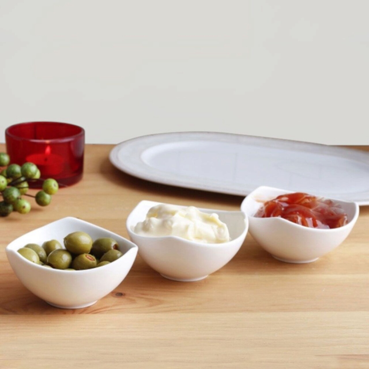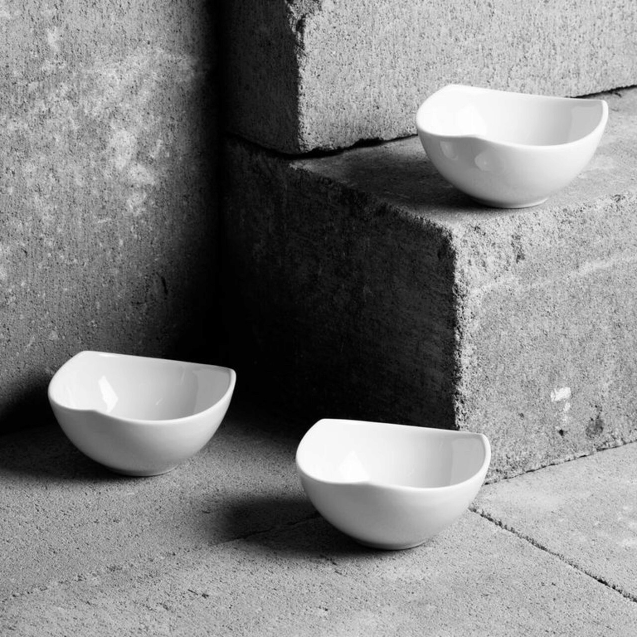 Set alcatuit din 3 boluri, din portelan alb de inalta calitate. Prezinta o forma interesanta, moderna, insa culoarea ii pastreaza eleganta si simplitatea. Se poate spala cu usurinta in masina de spalat vase si poate fi folosit in cuptorul cu microunde.