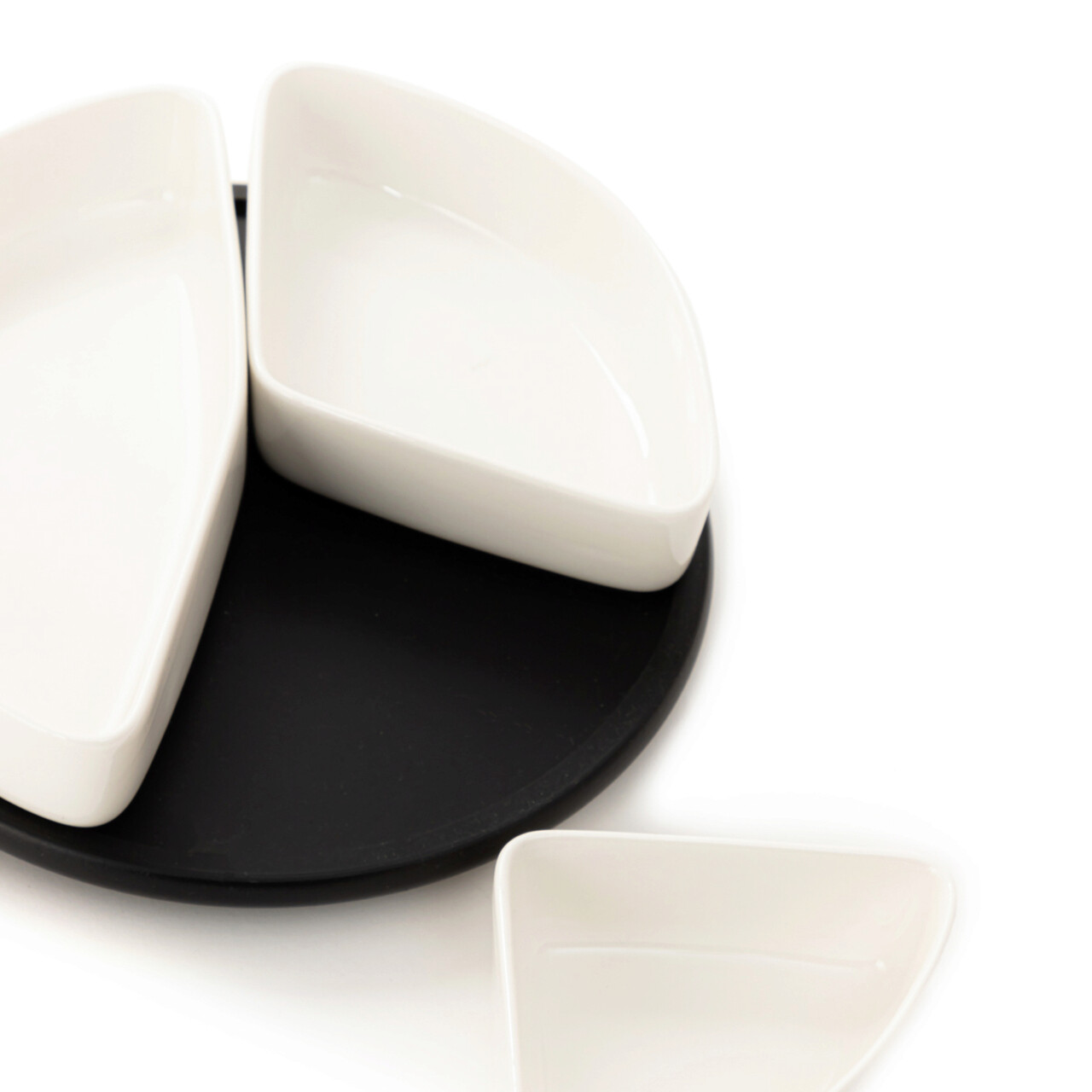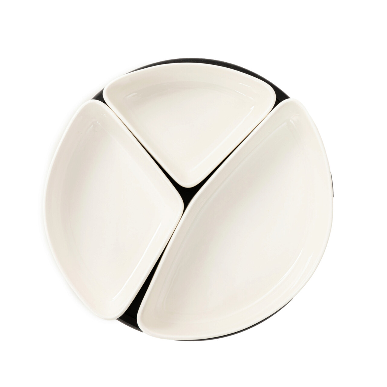 Set 3 boluri servire cu suport Felko, Homla, 24 cm, portelan/plastic, alb/negru